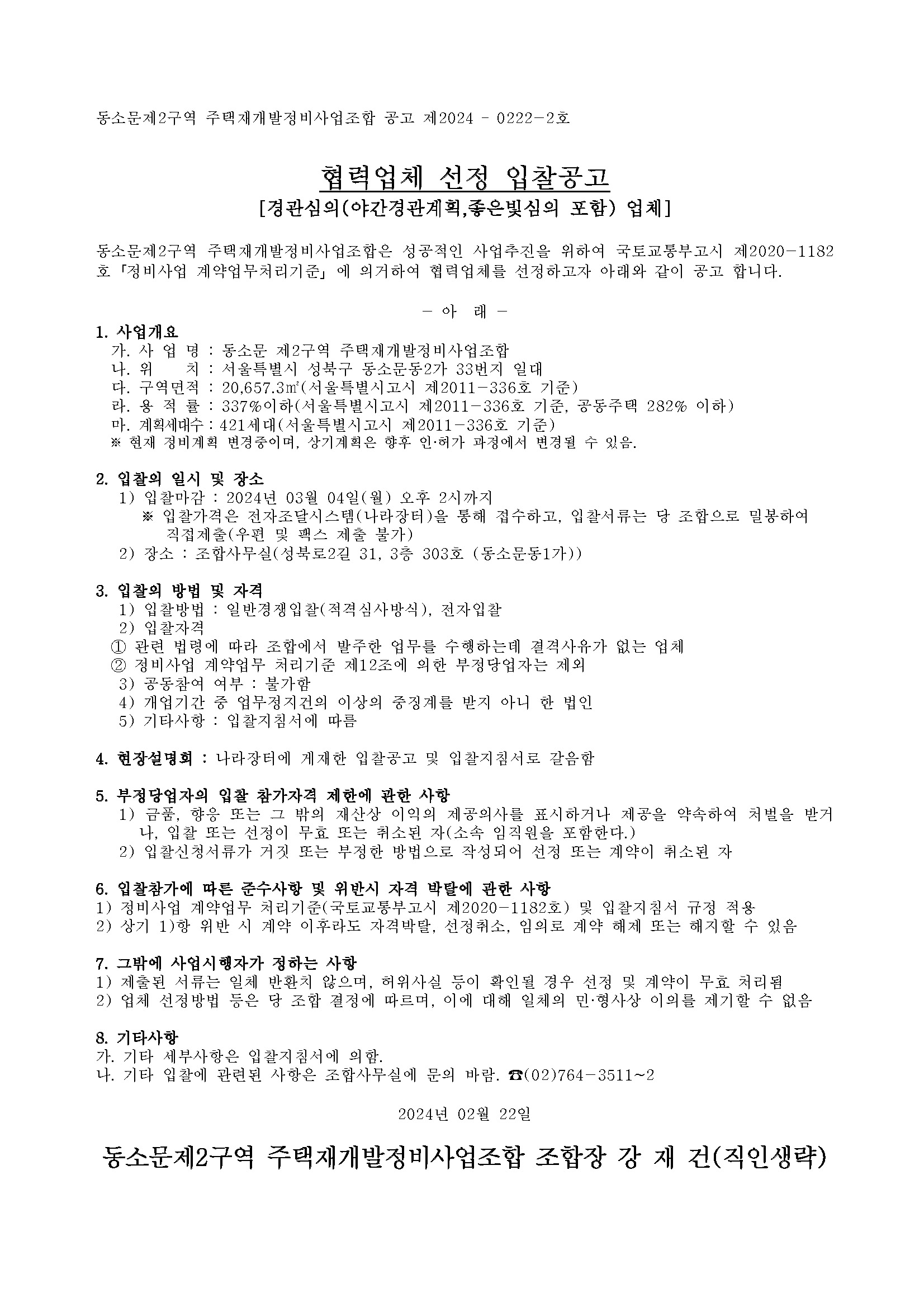 추진위원회/조합명 : 동소문제2구역 주택재개발정비사업조합