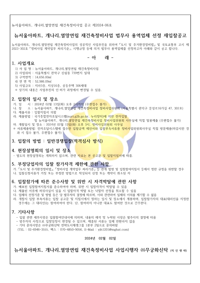 선정방법 : 일반경쟁입찰(적격심사 방식)