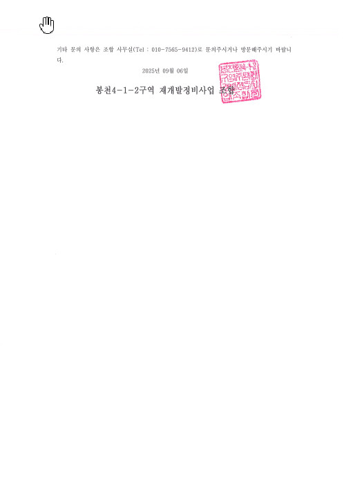 추진위원회/조합명 : 봉천제4-1-2구역 주택재개발정비사업 조합