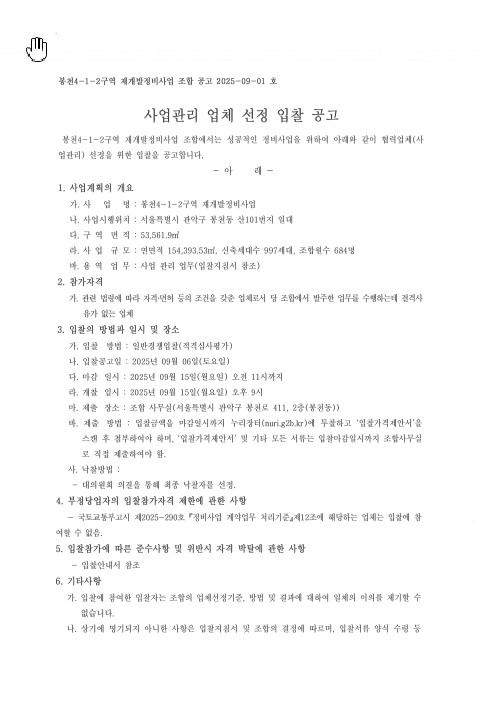 입찰명 : 사업관리 업체 선정 입찰 공고