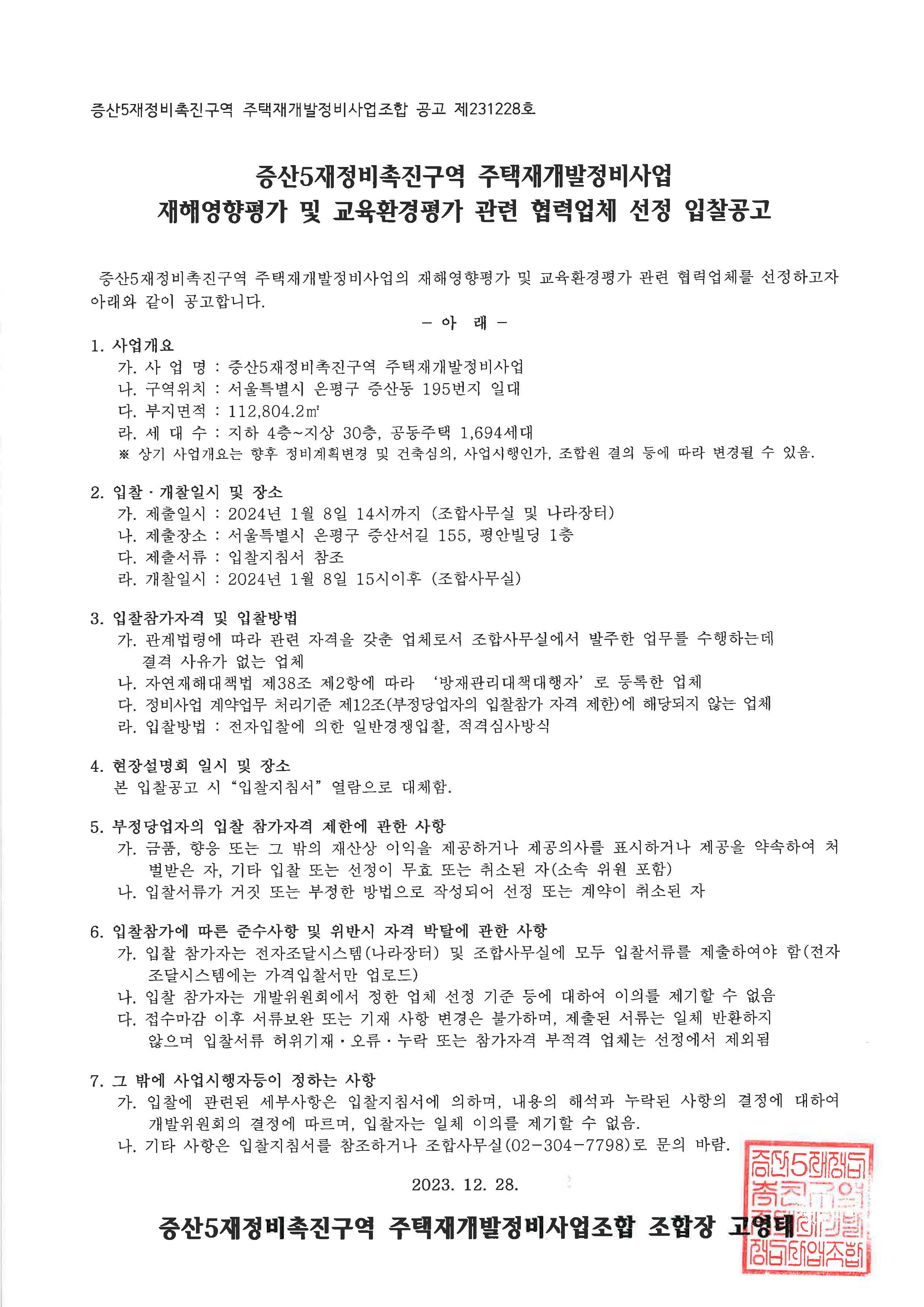 추진위원회/조합명 : 증산5재정비촉진구역 주택재개발정비사업 조합
