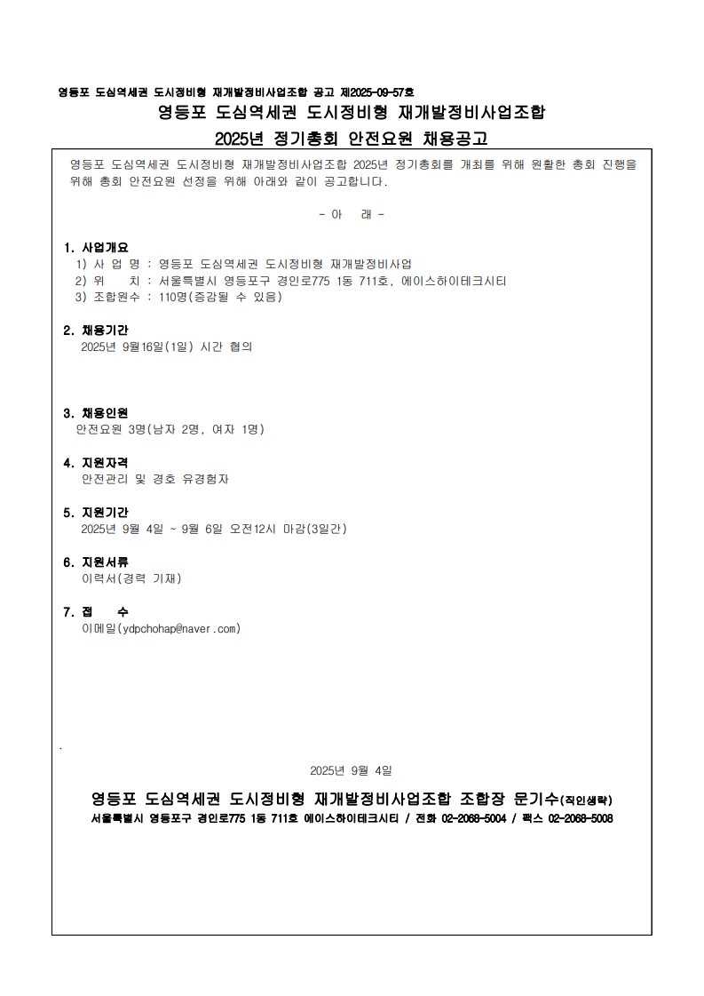 추진위원회/조합명 : 영등포 도심 역세권 도시정비형 재개발사업