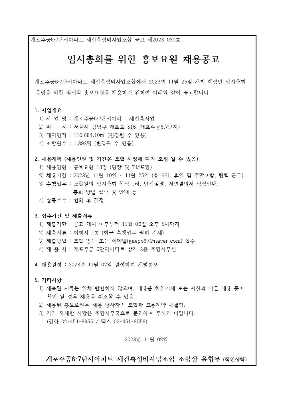 추진위원회/조합명 : 개포주공6,7단지아파트 재건축정비사업조합