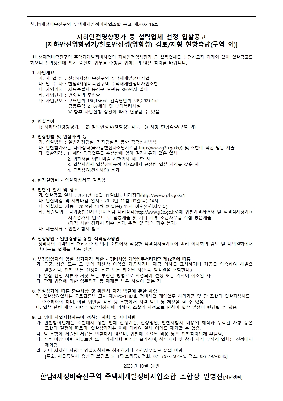 입찰명 : 지하안전영향평가 등 협력업체 선정 입찰공고