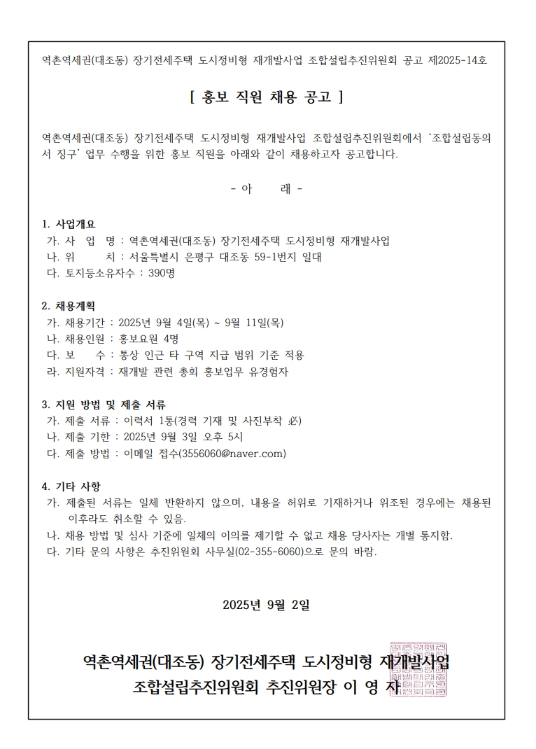 홍보 직원 채용 공고