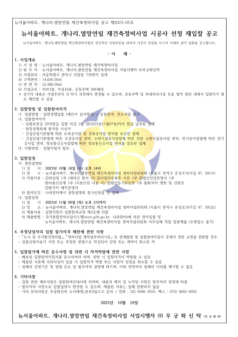 추진위원회/조합명 : 뉴서울아파트, 개나리,열망연립 재건축정비사업