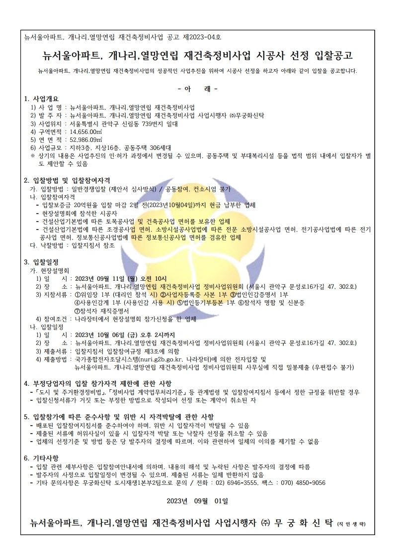 선정방법 : 일반경쟁입찰(제안서 심사방식)