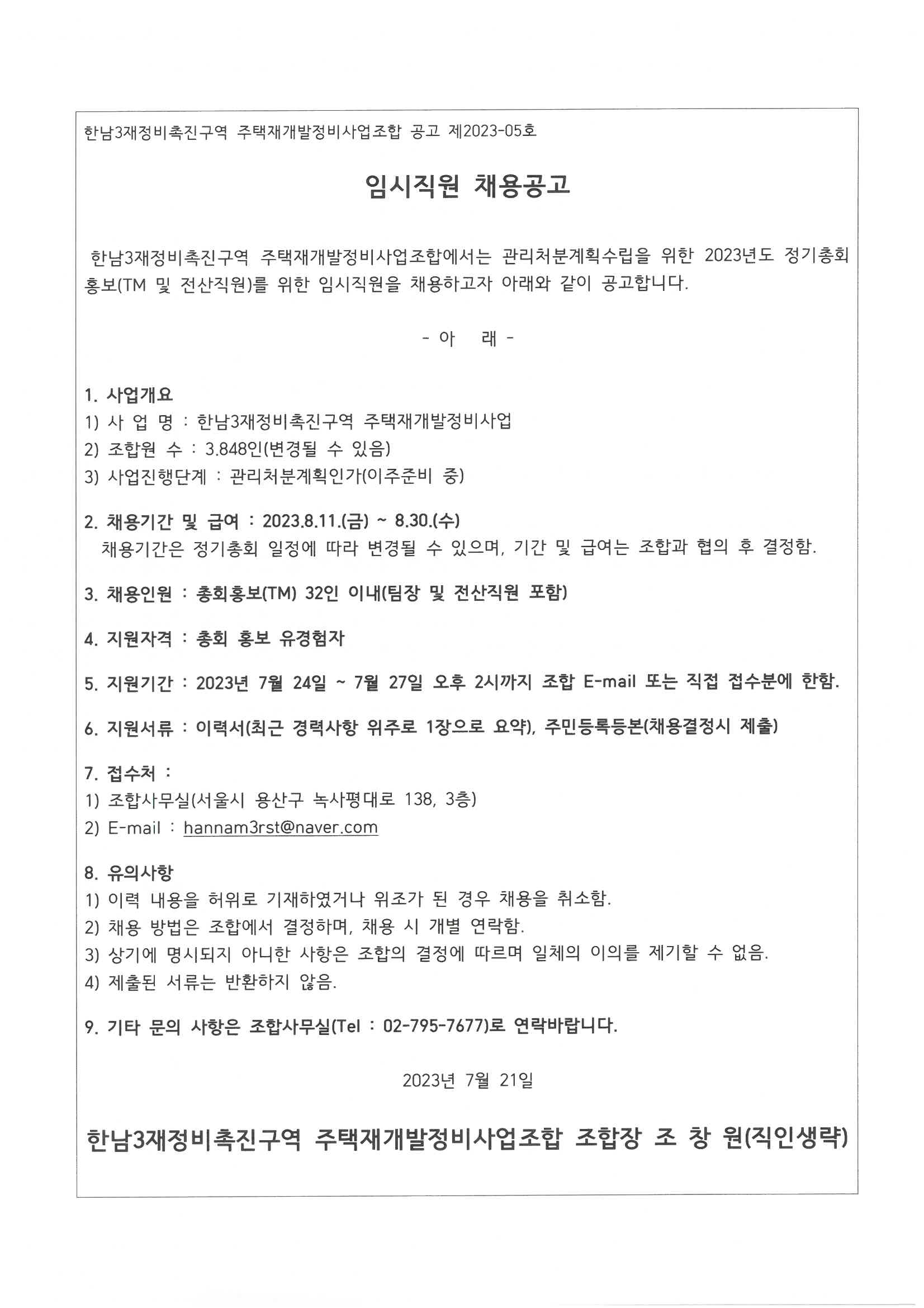 230721 임시직원 채용공고(총회 TM 및 전산직원)
