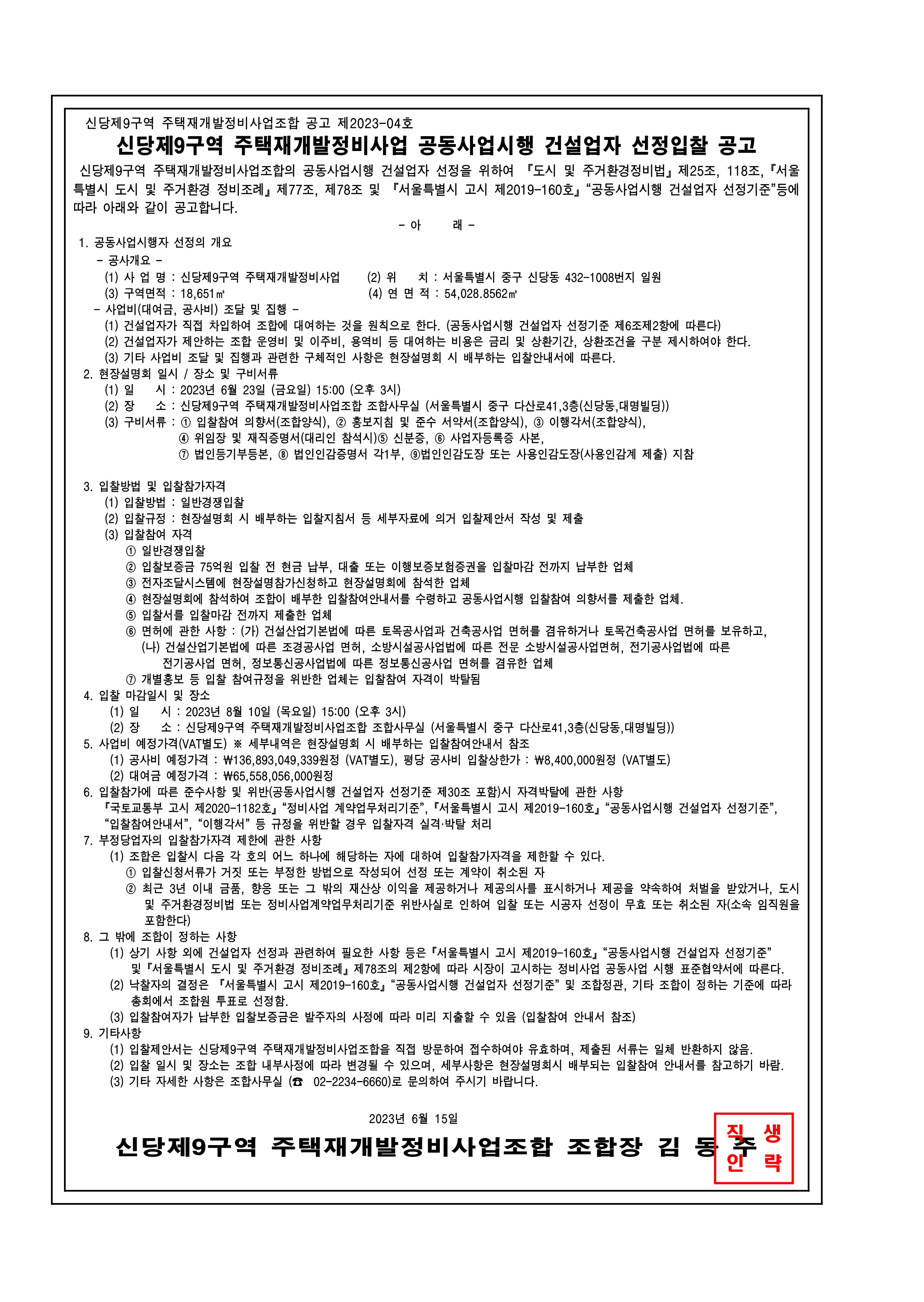 추진위원회/조합명 : 신당제9구역 주택재개발정비사업조합