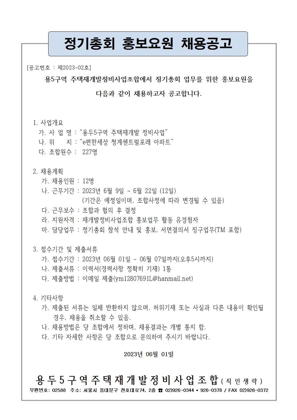 [공고 제2023-02호] 정기총회 홍보요원 채용공고