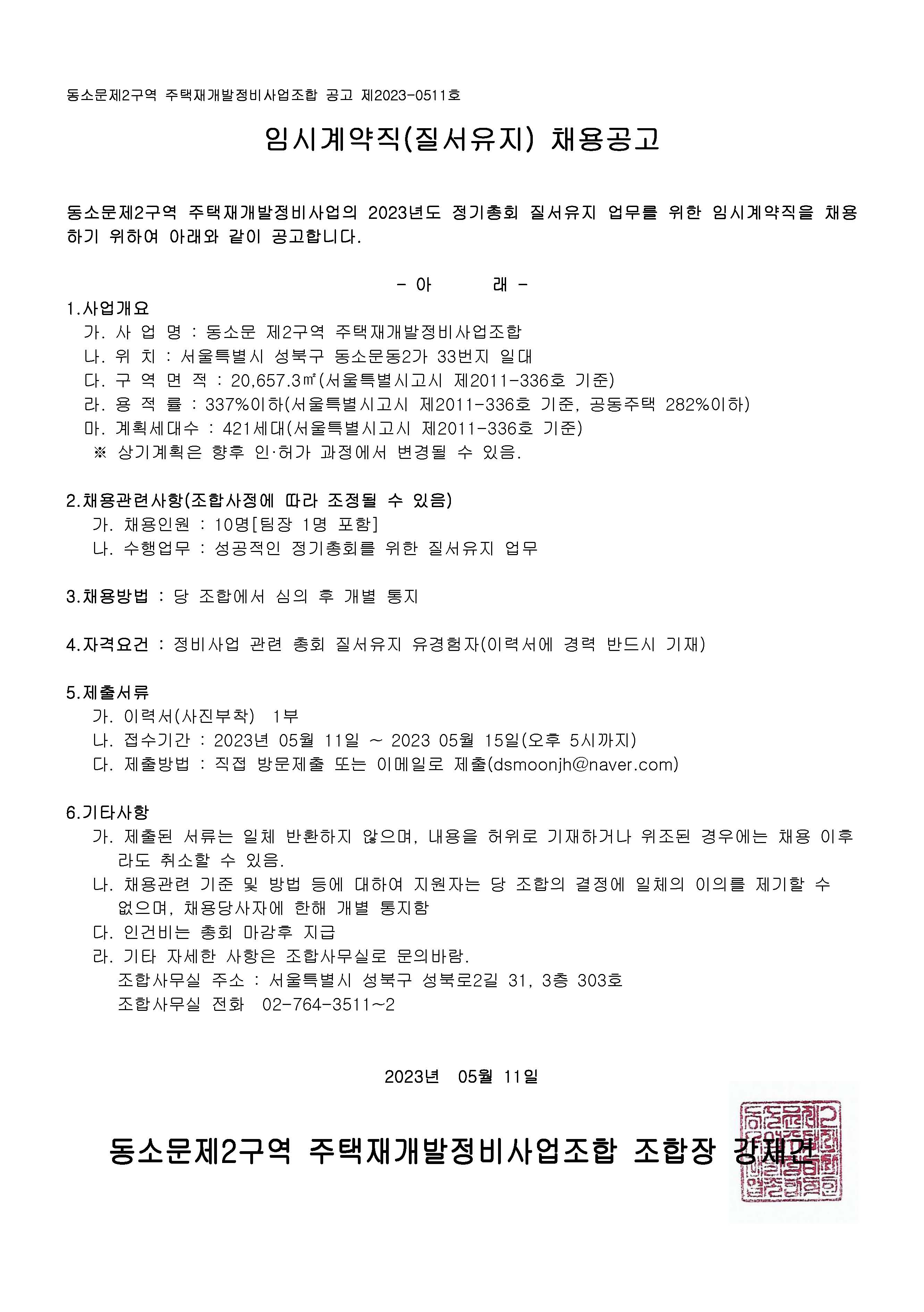추진위원회/조합명 : 동소문제2구역 주택재개발정비사업조합