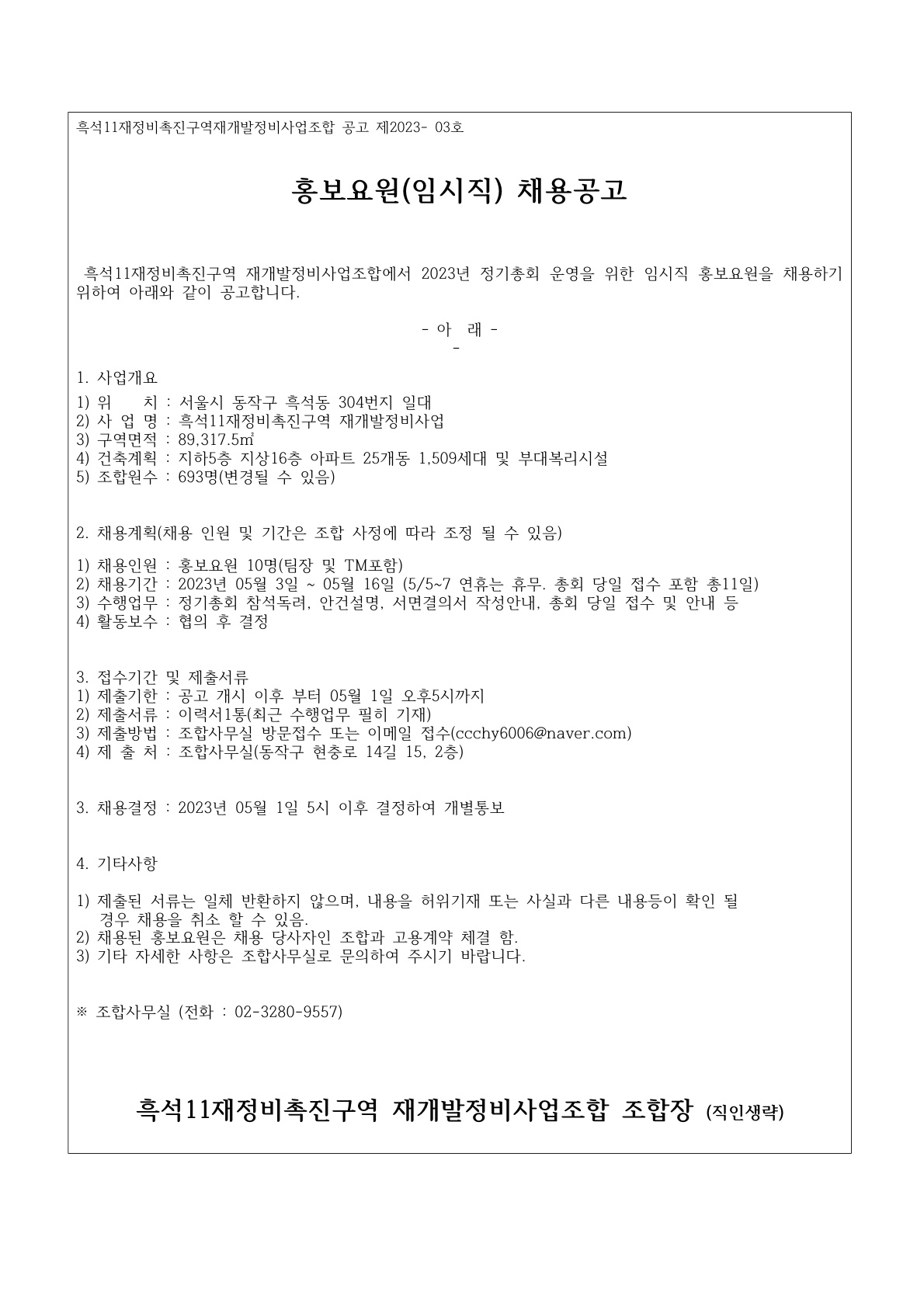추진위원회/조합명 : 흑석11재정비촉진구역 주택재개발정비사업조합