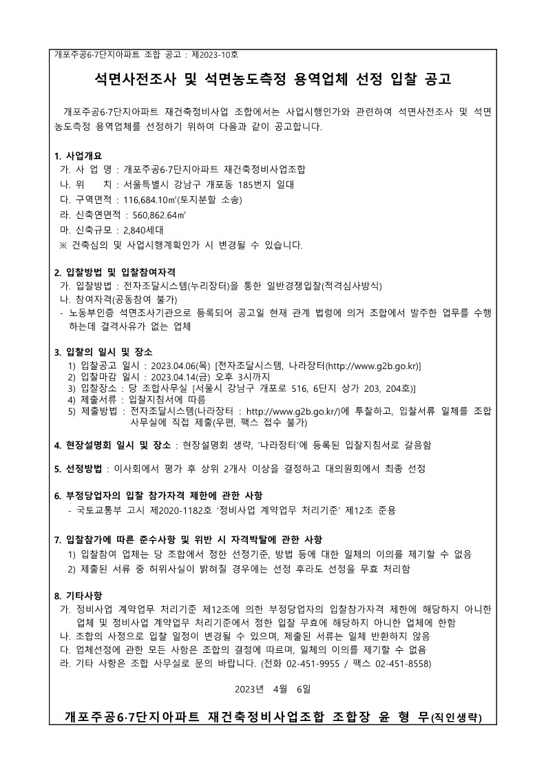 추진위원회/조합명 : 개포주공6,7단지아파트 재건축정비사업조합