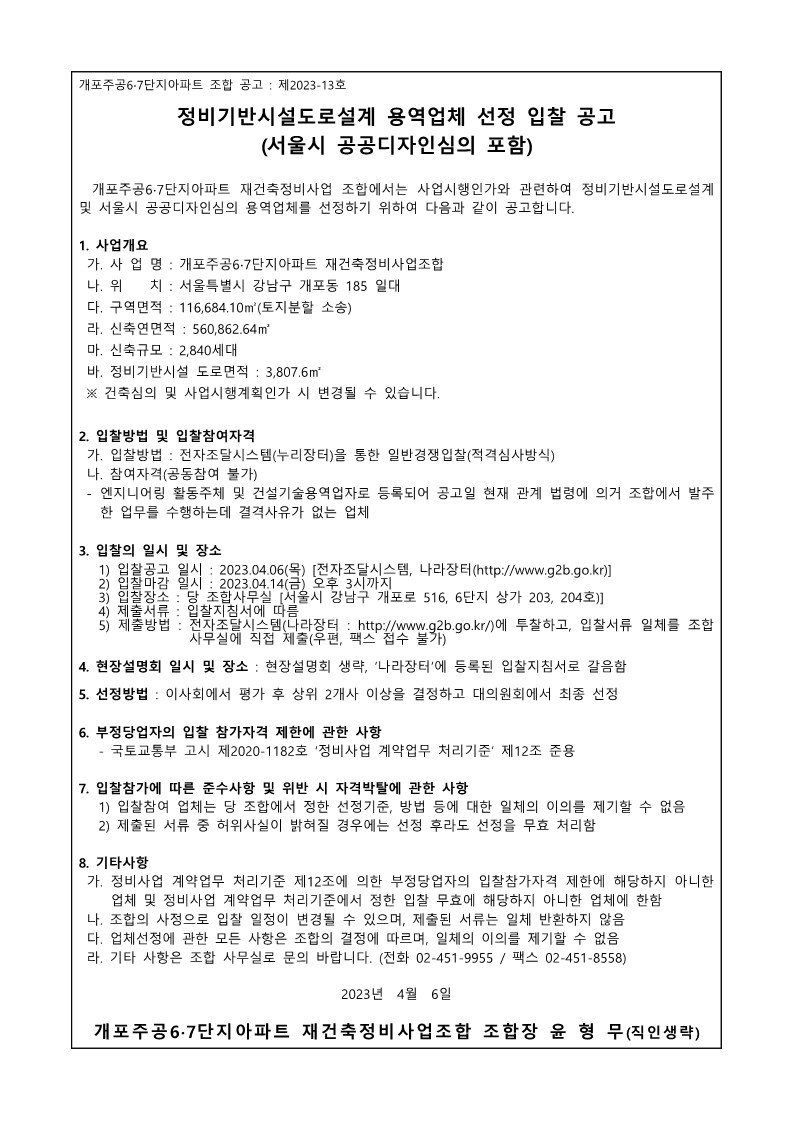 추진위원회/조합명 : 개포주공6,7단지아파트 재건축정비사업조합