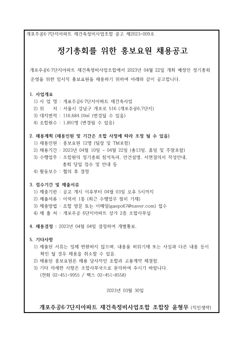 입찰명 : 정기총회를 위한 홍보요원 채용공고