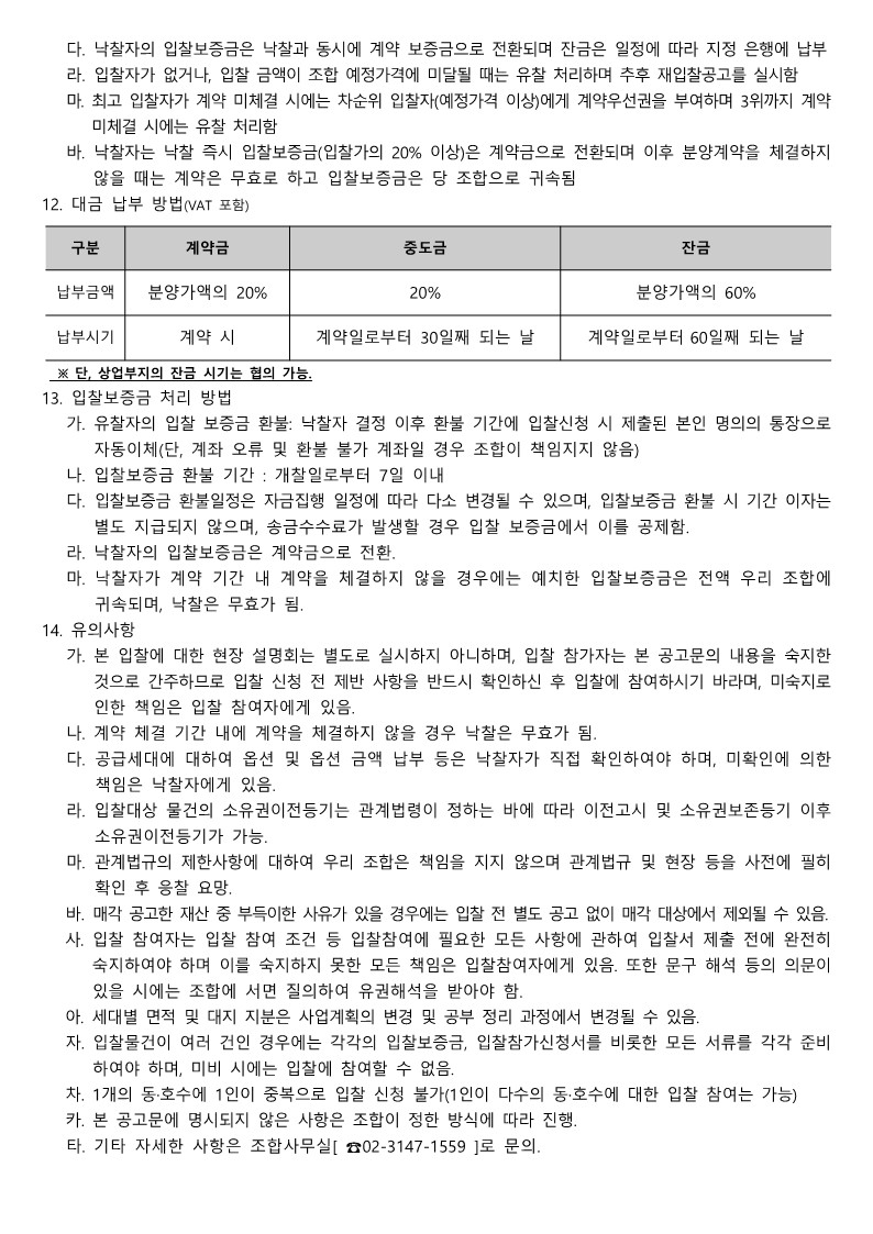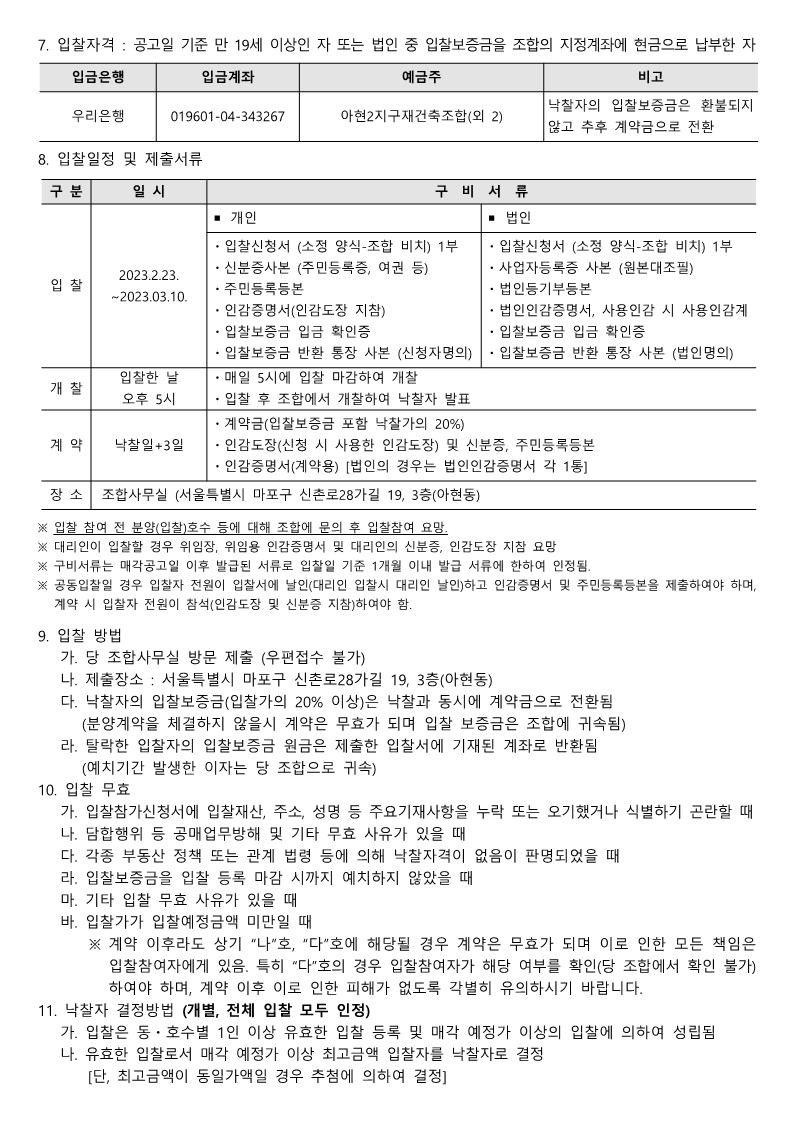 입찰명 : 아현2구역 주택재건축정비사업조합 '마포 더 클래시' 근린생활시설 및 상업부지 매각을 위한 입찰 공고