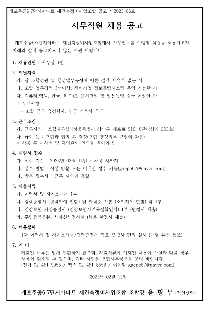 추진위원회/조합명 : 개포주공6,7단지아파트 재건축정비사업조합
