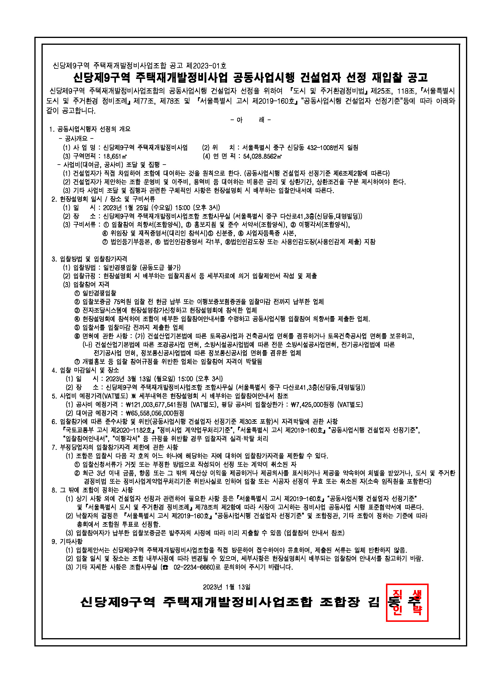 추진위원회/조합명 : 신당제9구역 주택재개발정비사업조합