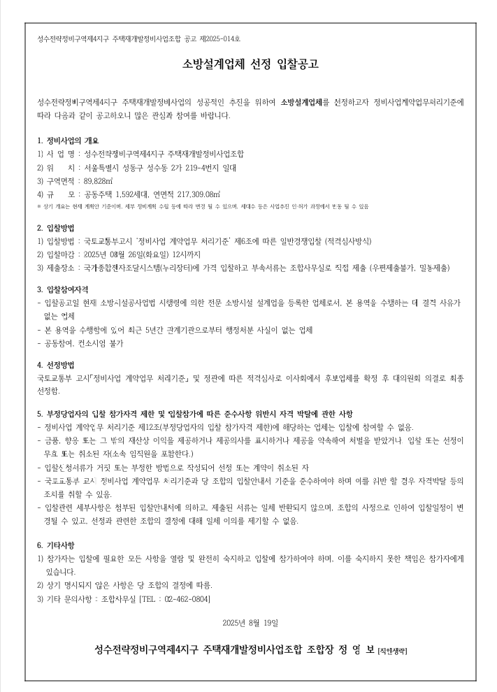추진위원회/조합명 : 성수전략정비구역 제4지구 주택재개발정비사업조합