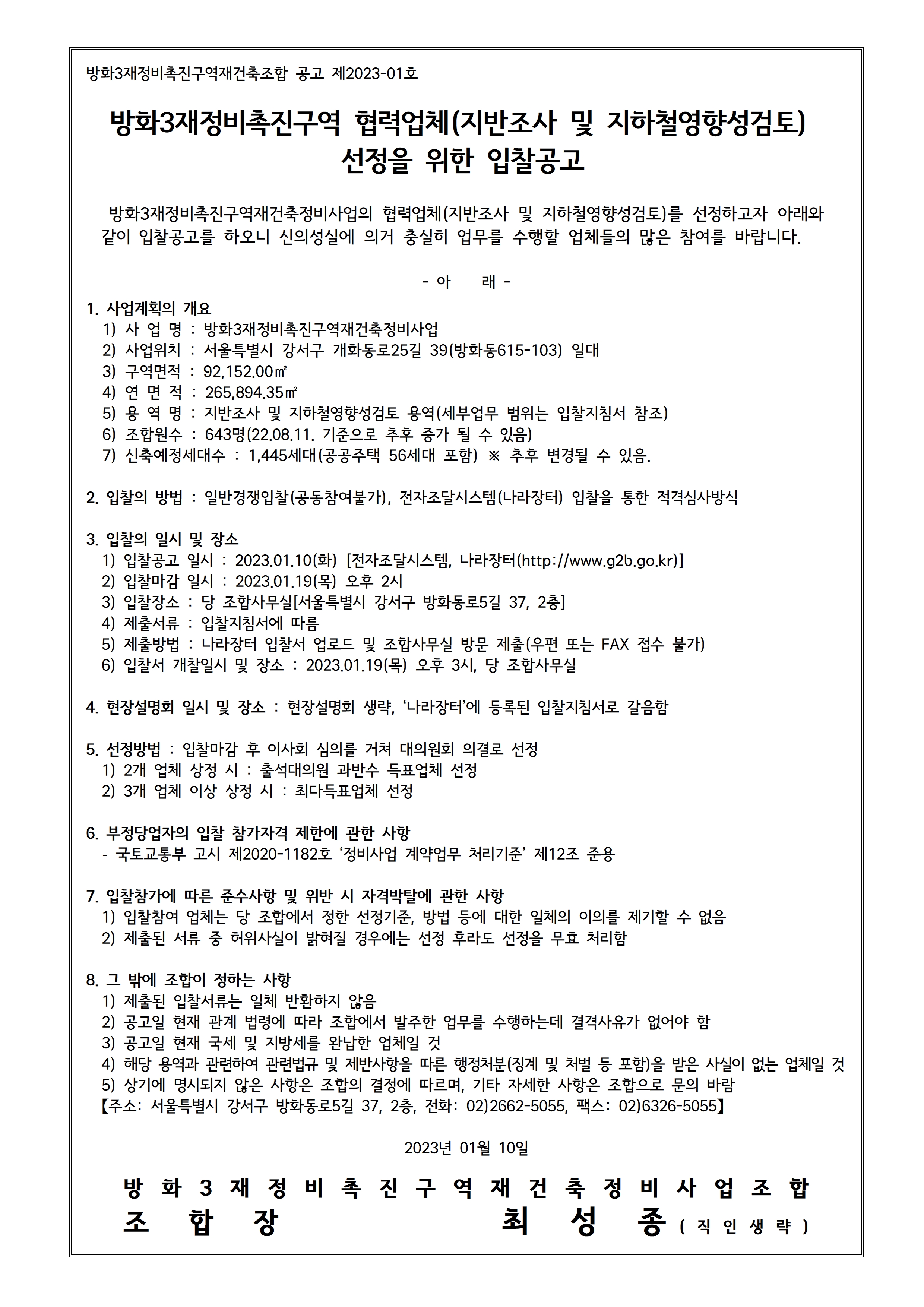 지반조사 및 지하철영향성검토 협력업체 선정 입찰 공고