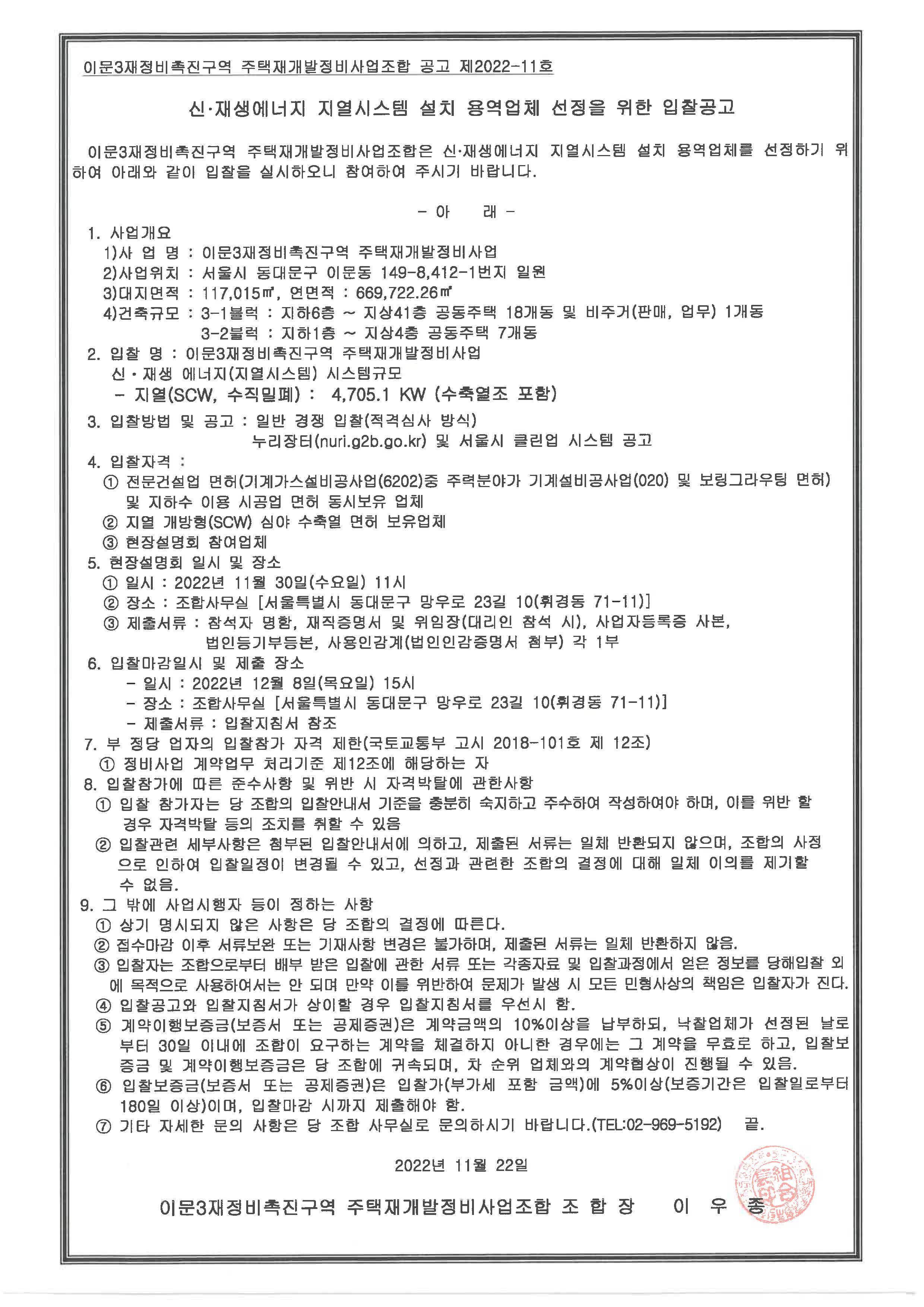 입찰명 : 신재생에너지 지열시스템 설치 용역업체 선정