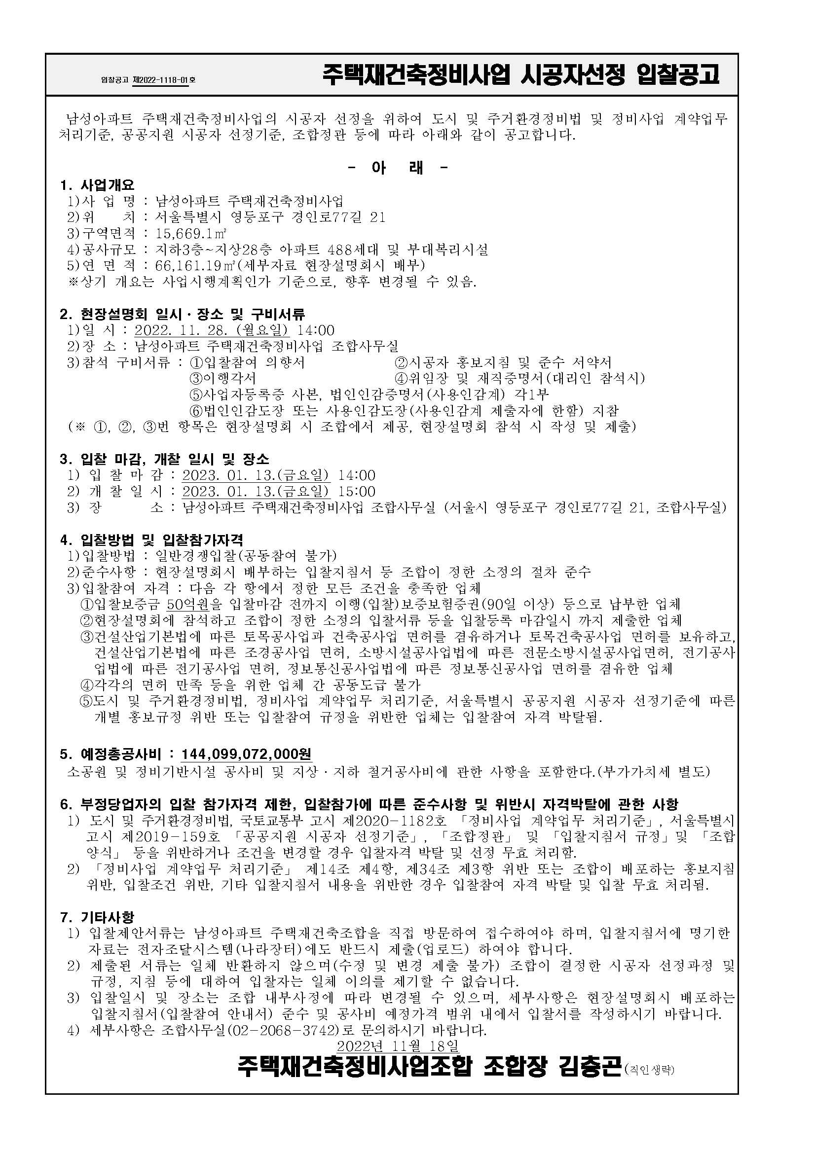 추진위원회/조합명 : 남성아파트 주택재건축정비사업조합