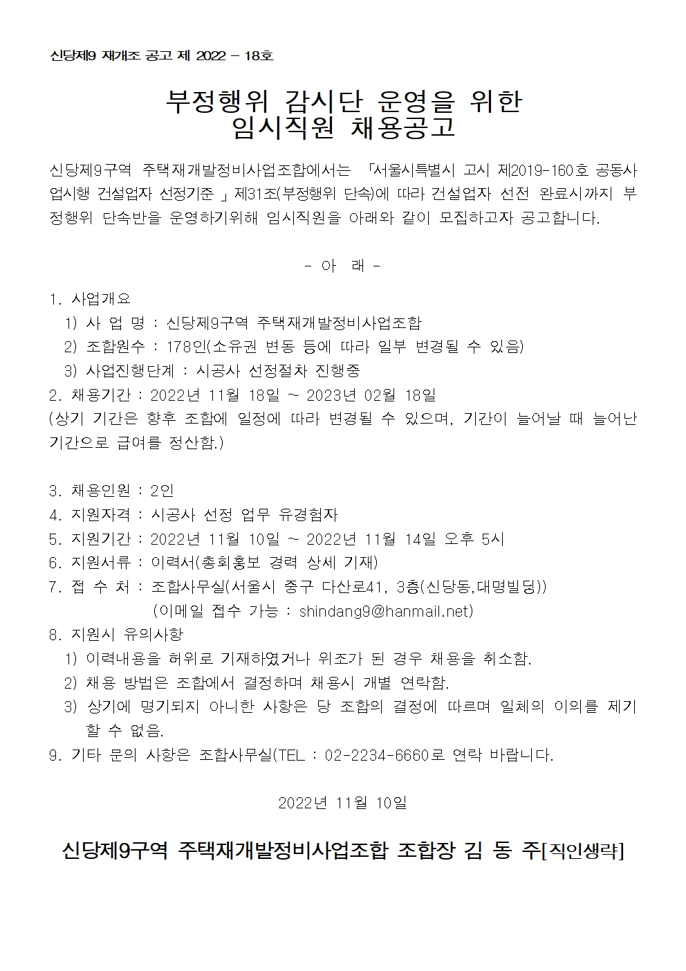 추진위원회/조합명 : 신당제9구역 주택재개발정비사업조합