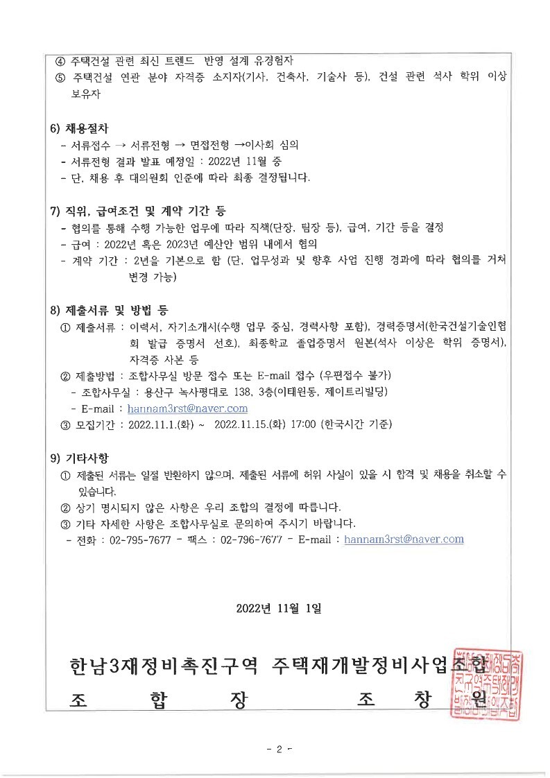 재정비촉진계획 변경 등 중대변경을 위한 기술직 채용 공고(2차)