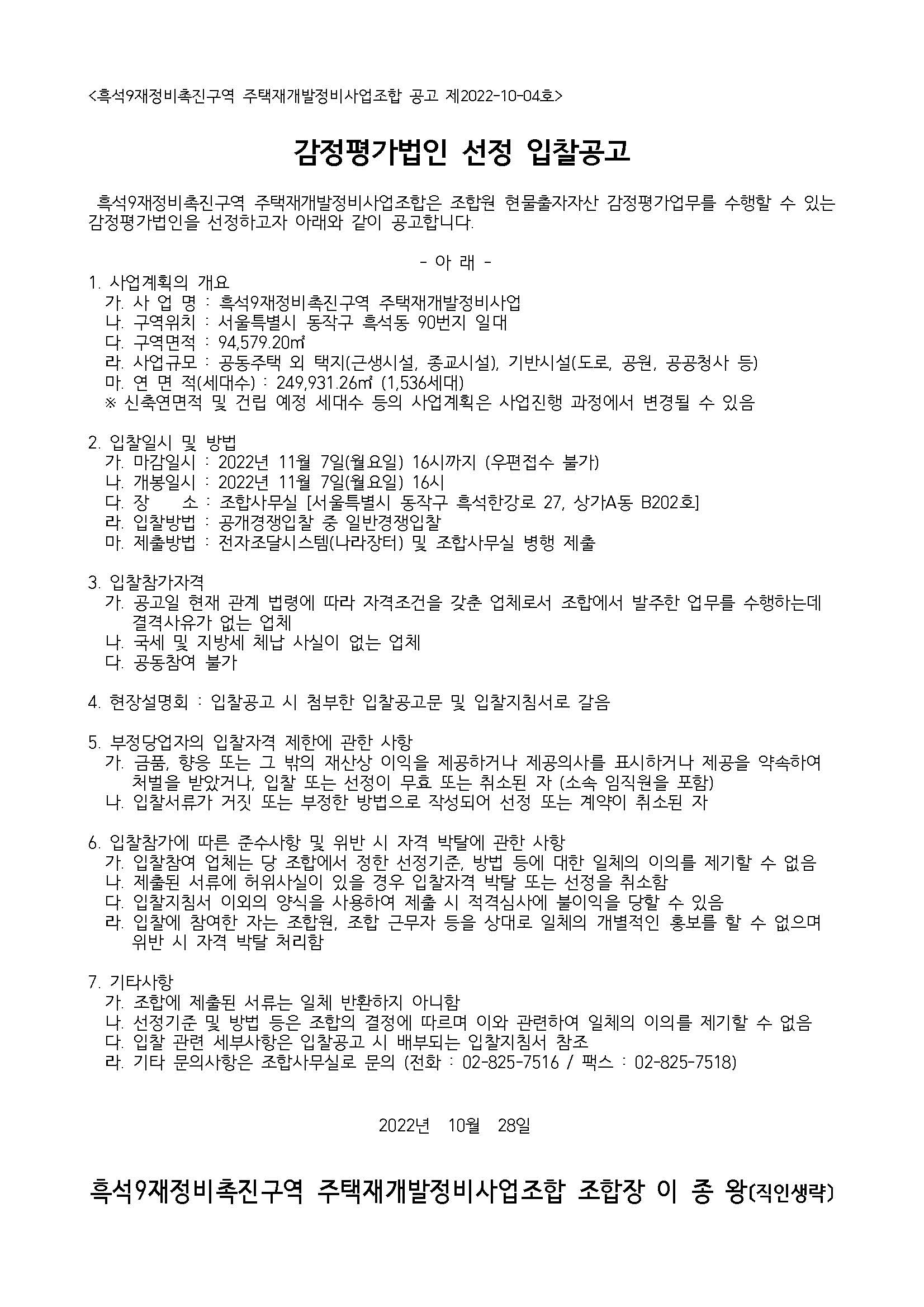 추진위원회/조합명 : 흑석9재정비촉진구역 조합
