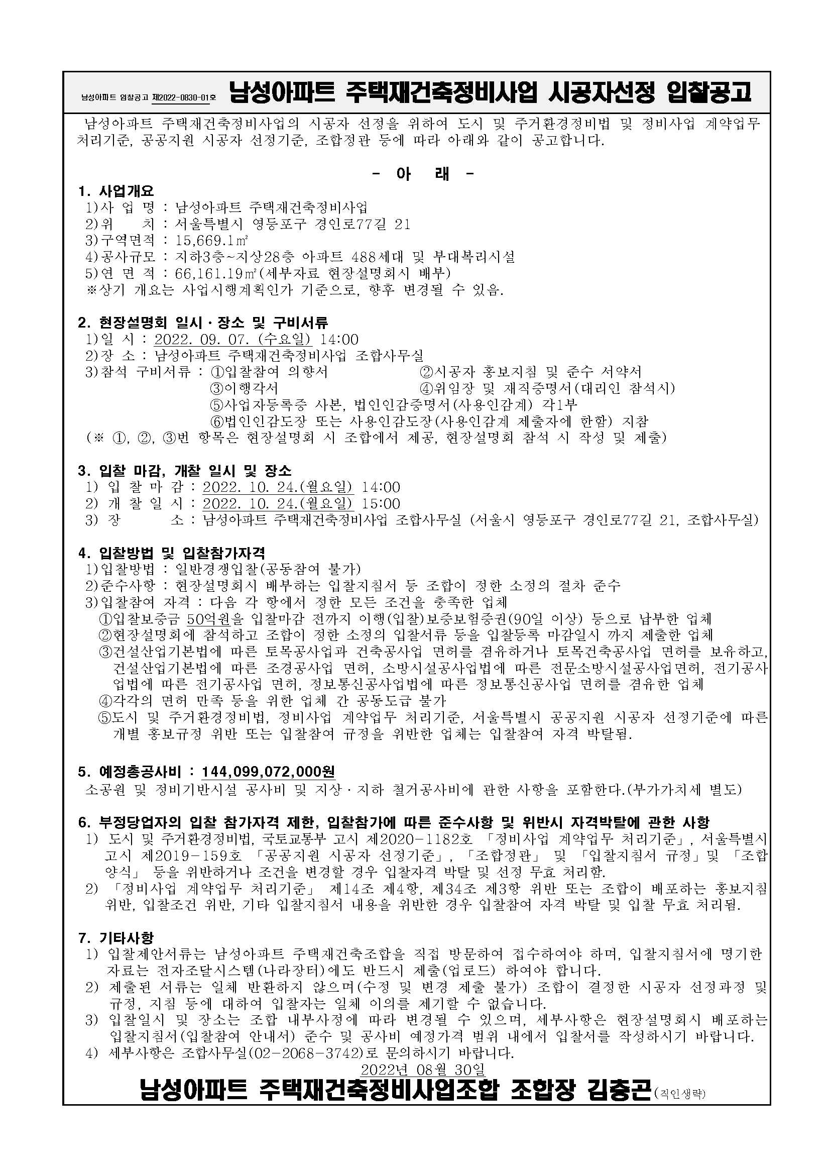 추진위원회/조합명 : 남성아파트 주택재건축정비사업조합