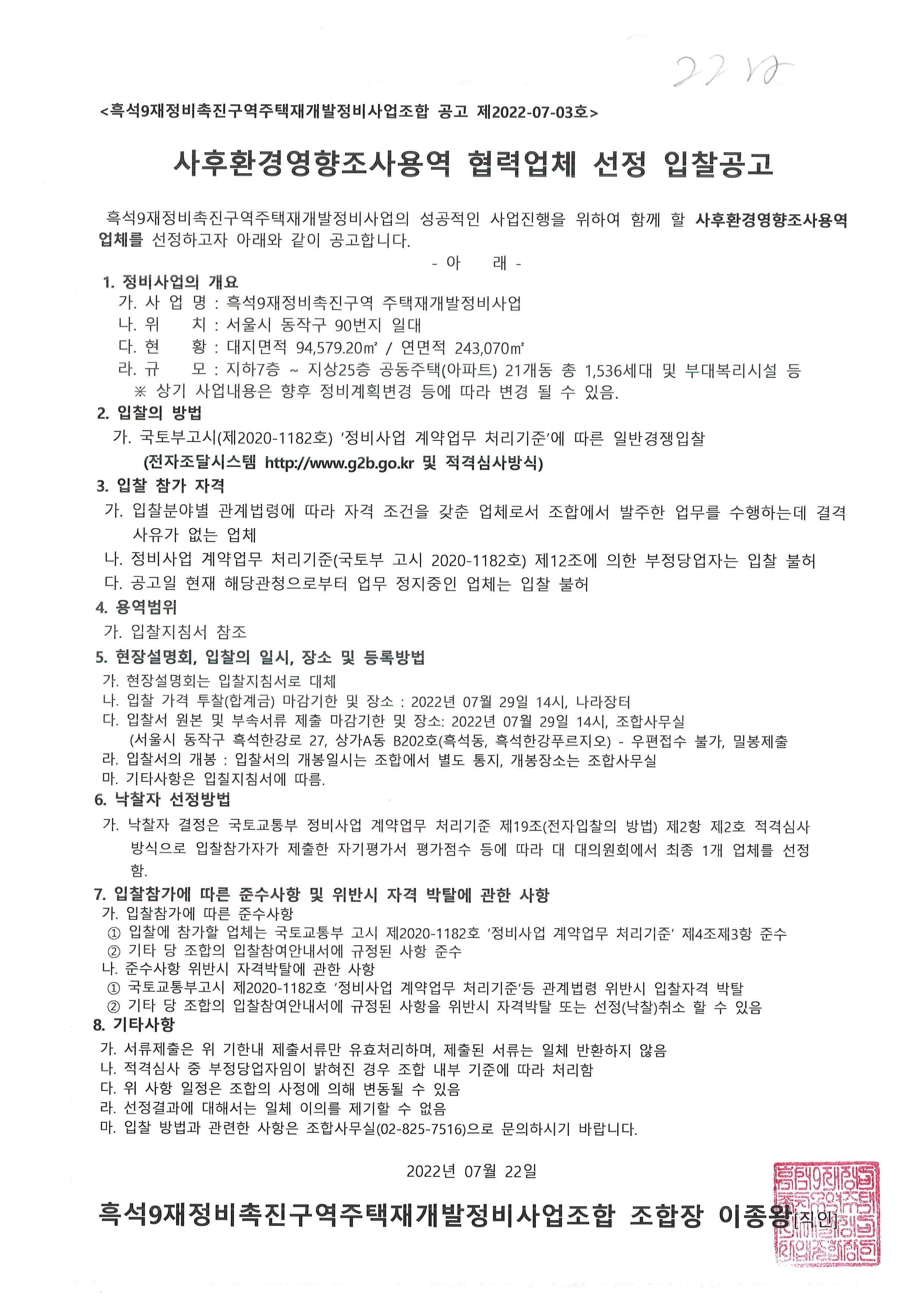추진위원회/조합명 : 흑석9재정비촉진구역 조합