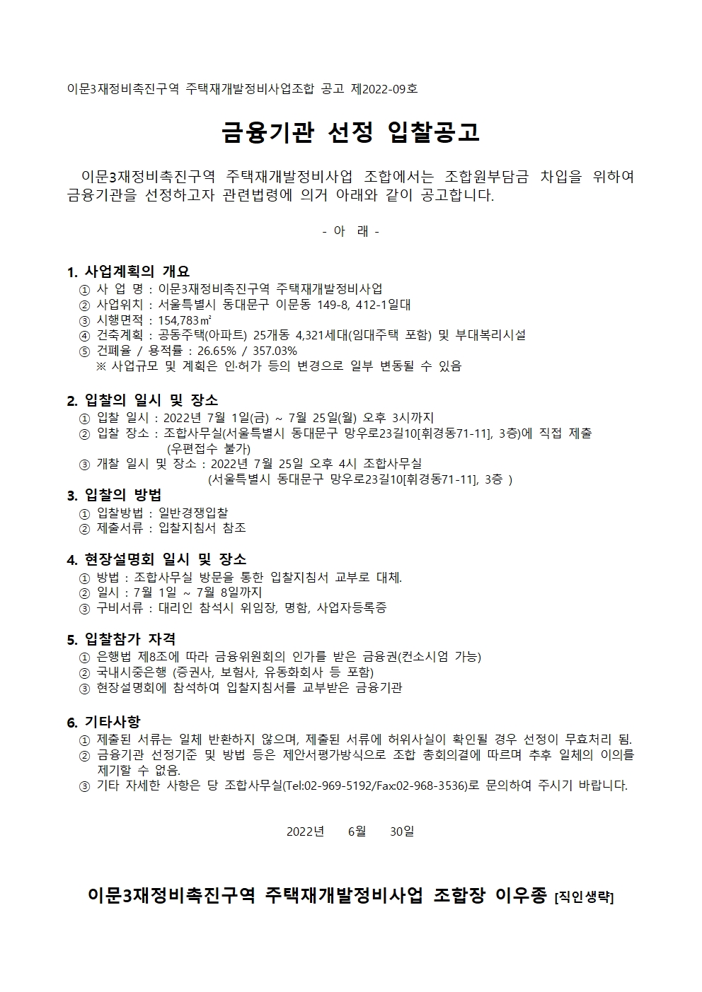 추진위원회/조합명 : 이문3재정비촉진구역 주택재개발정비사업조합
