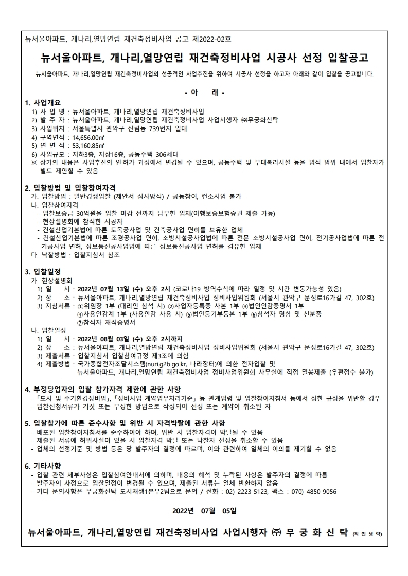 선정방법 : 일반경쟁입찰(적격심사방식)