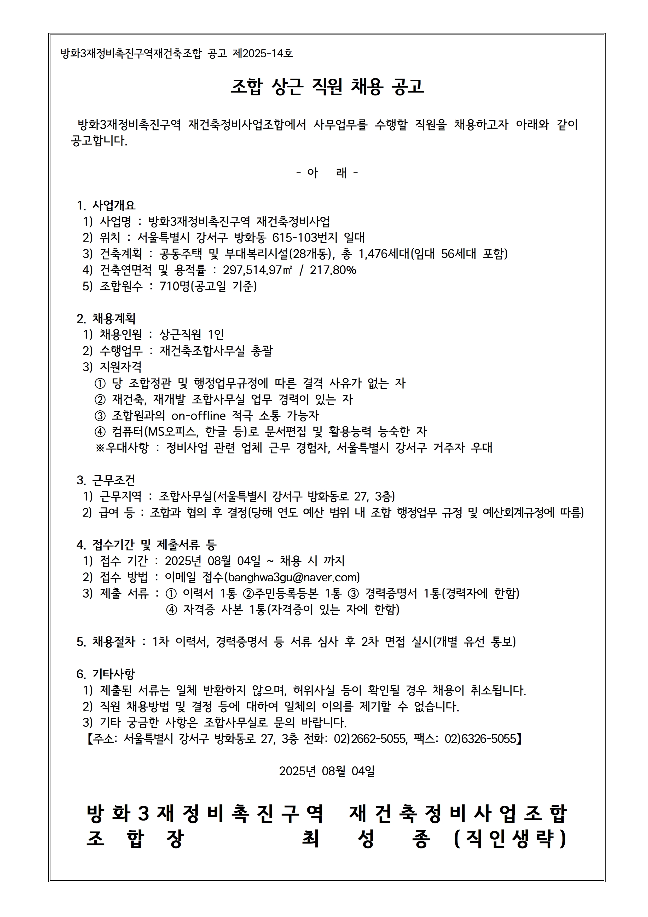 추진위원회/조합명 : 방화3재정비촉진구역 재건축정비사업조합
