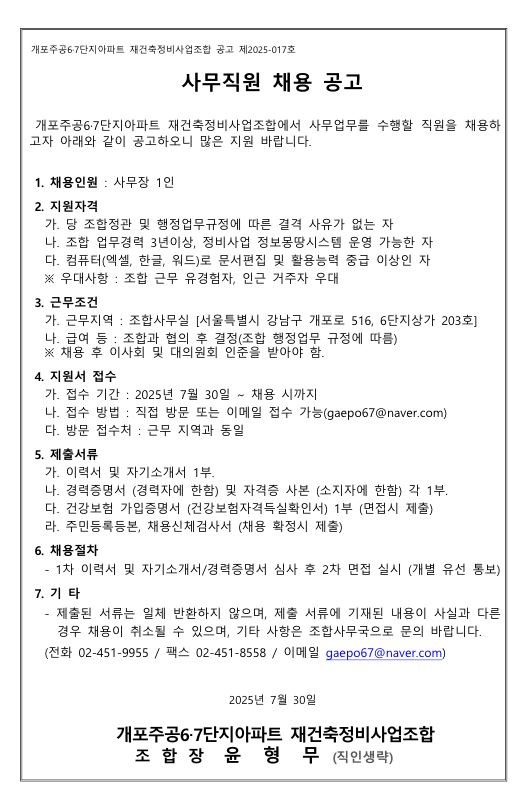 추진위원회/조합명 : 개포주공6,7단지아파트 재건축정비사업조합