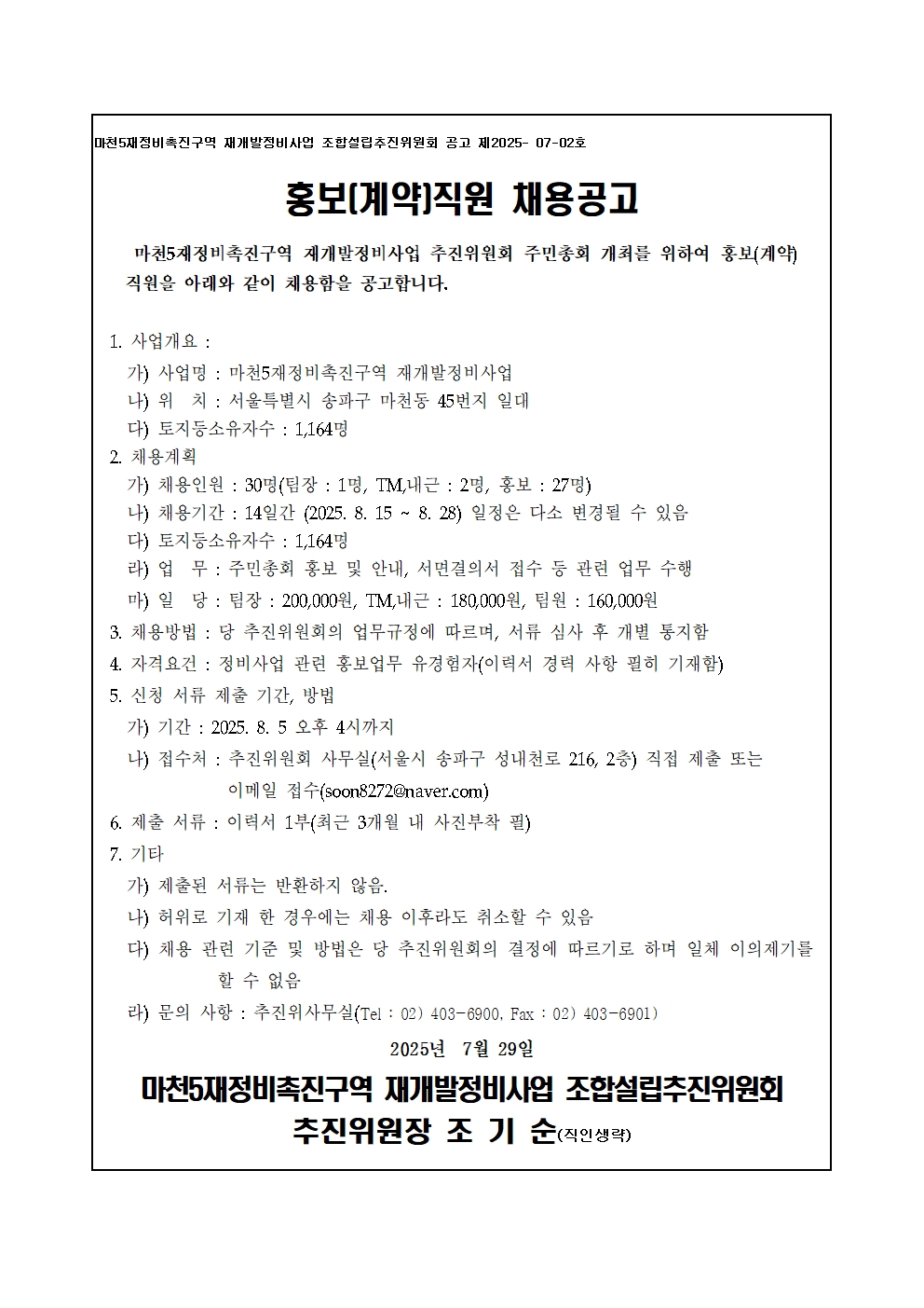 입찰명 : 홍보(계약)직원 채용공고(25.7.29)