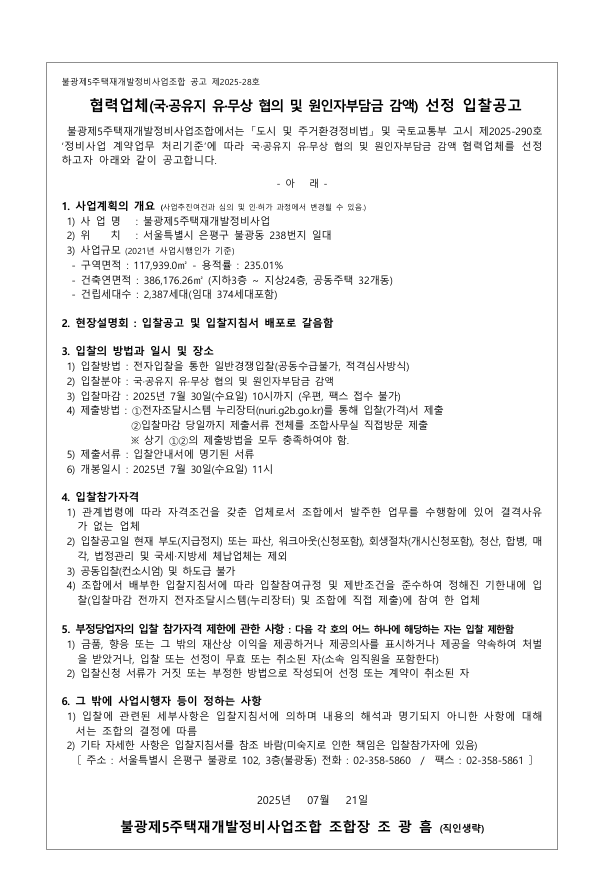 협력업체(국·공유지 유·무상 협의 및 원인자부담금 감액) 선정 입찰공고