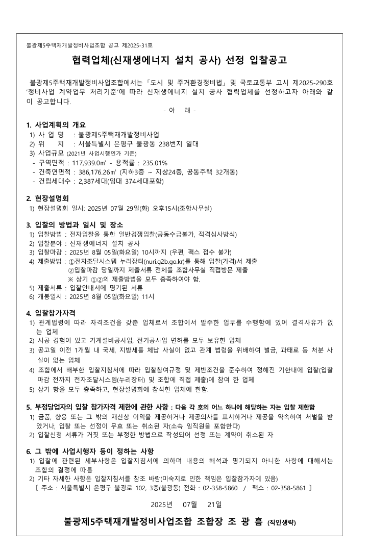 협력업체(신재생에너지 설치 공사) 선정 입찰공고