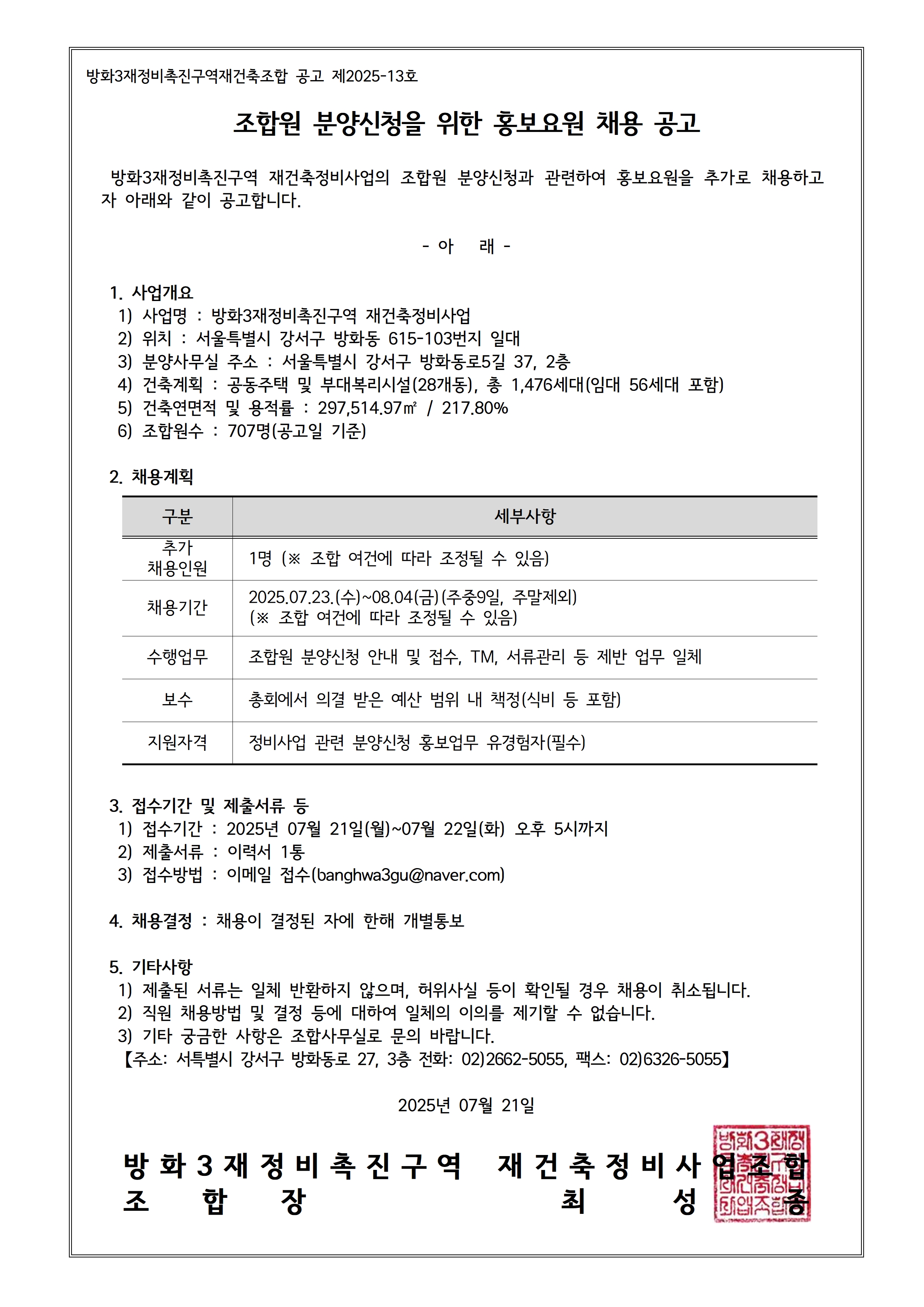 조합원 분양신청을 위한 홍보요원 채용 공고