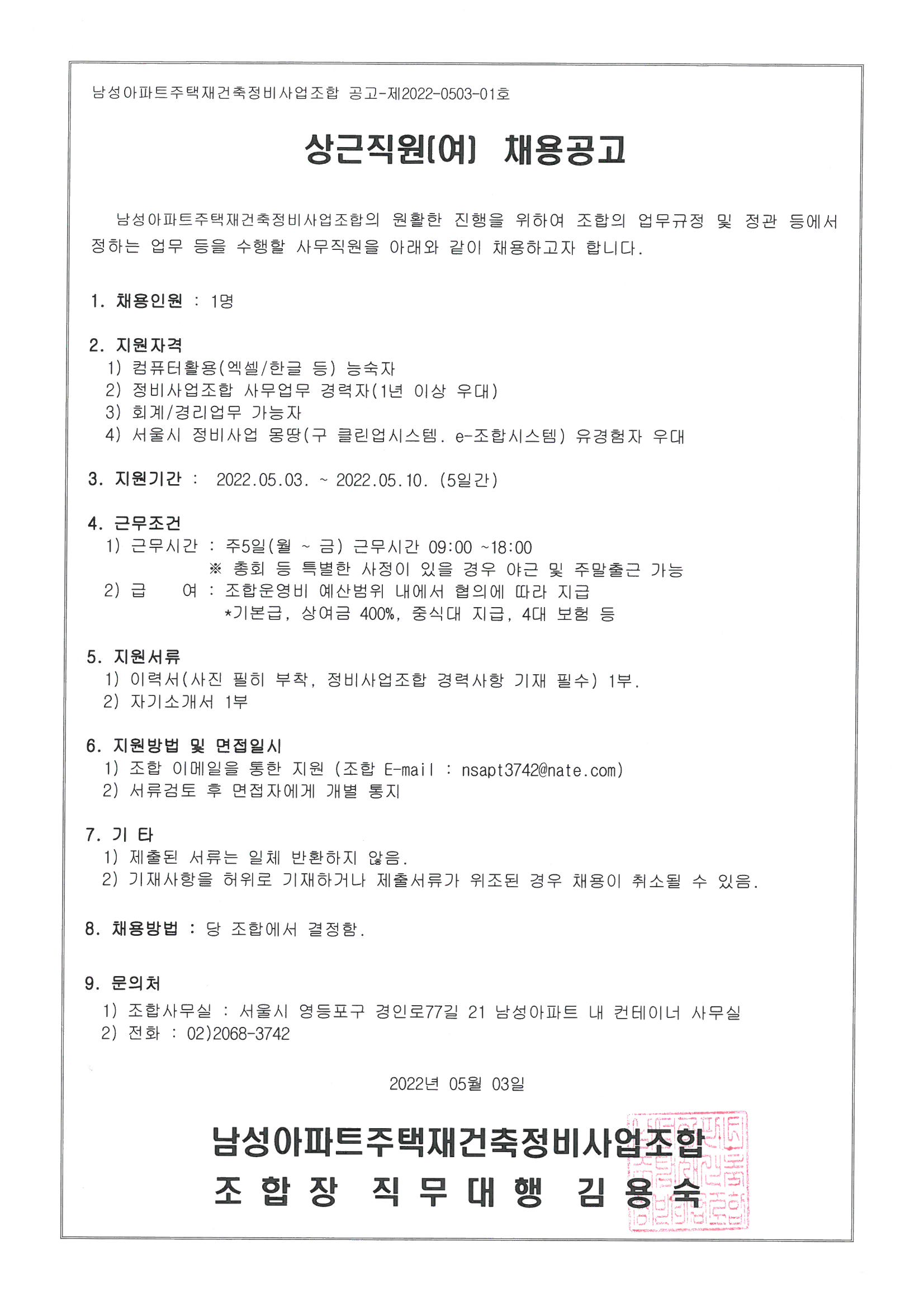 상근직원(여) 채용공고