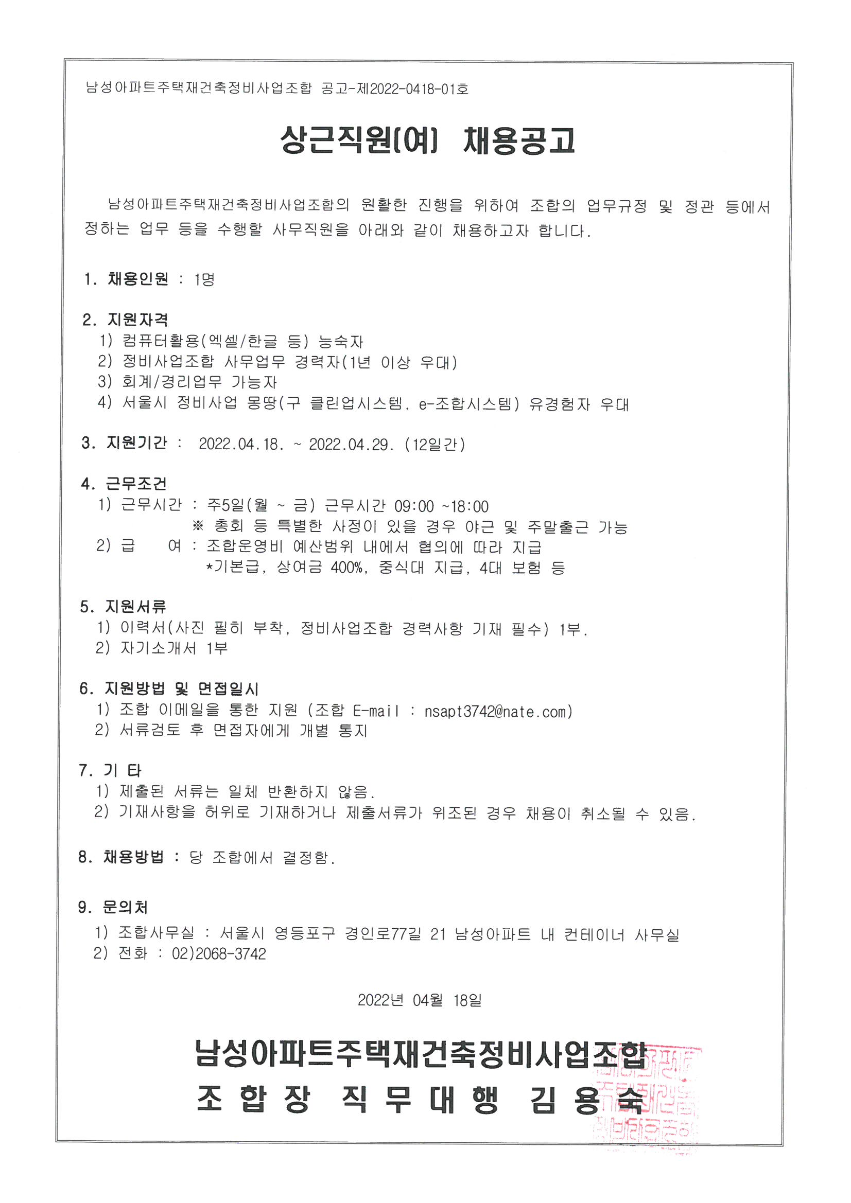 상근직원(여) 채용공고