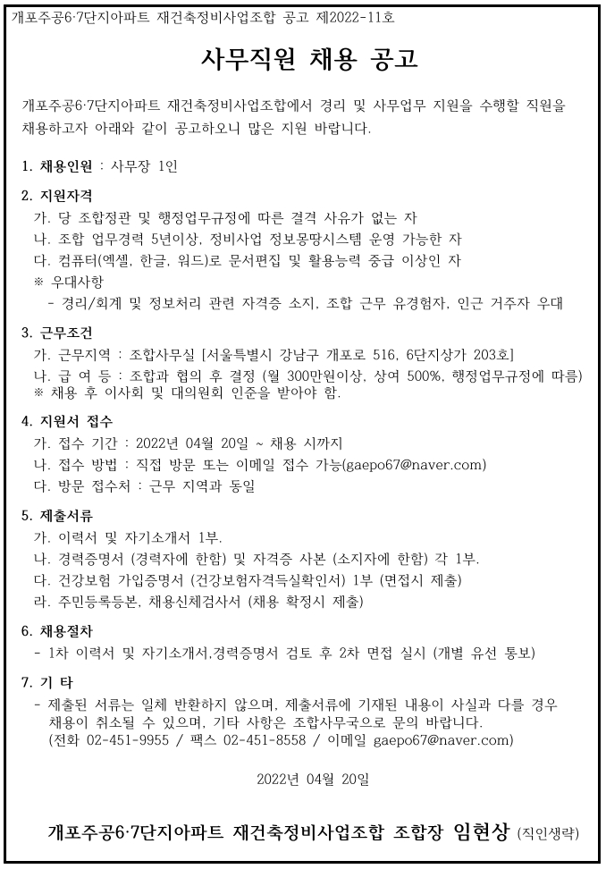 추진위원회/조합명 : 개포주공6,7단지아파트 재건축정비사업조합