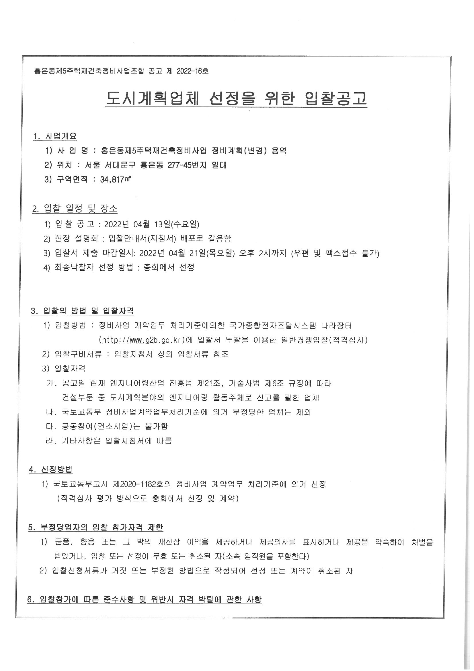 입찰명 : 도시계획업체 선정을 위한 입찰공고