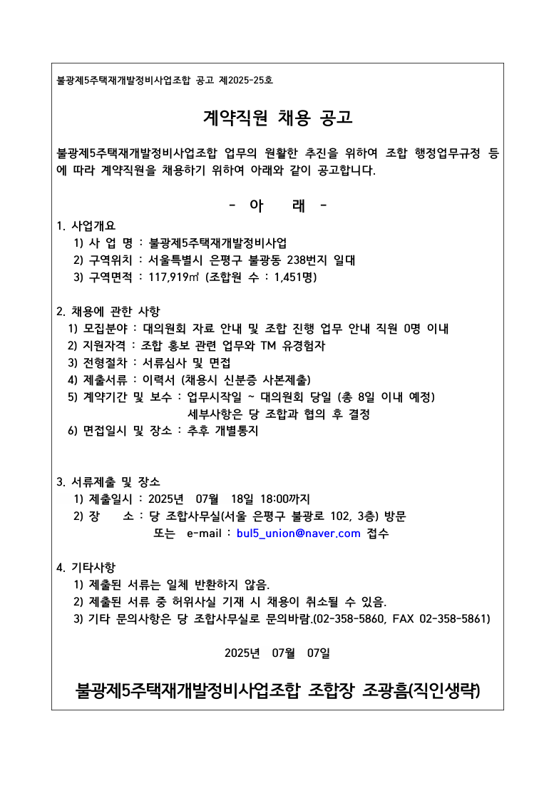 추진위원회/조합명 : 불광제5 주택재개발정비사업 조합