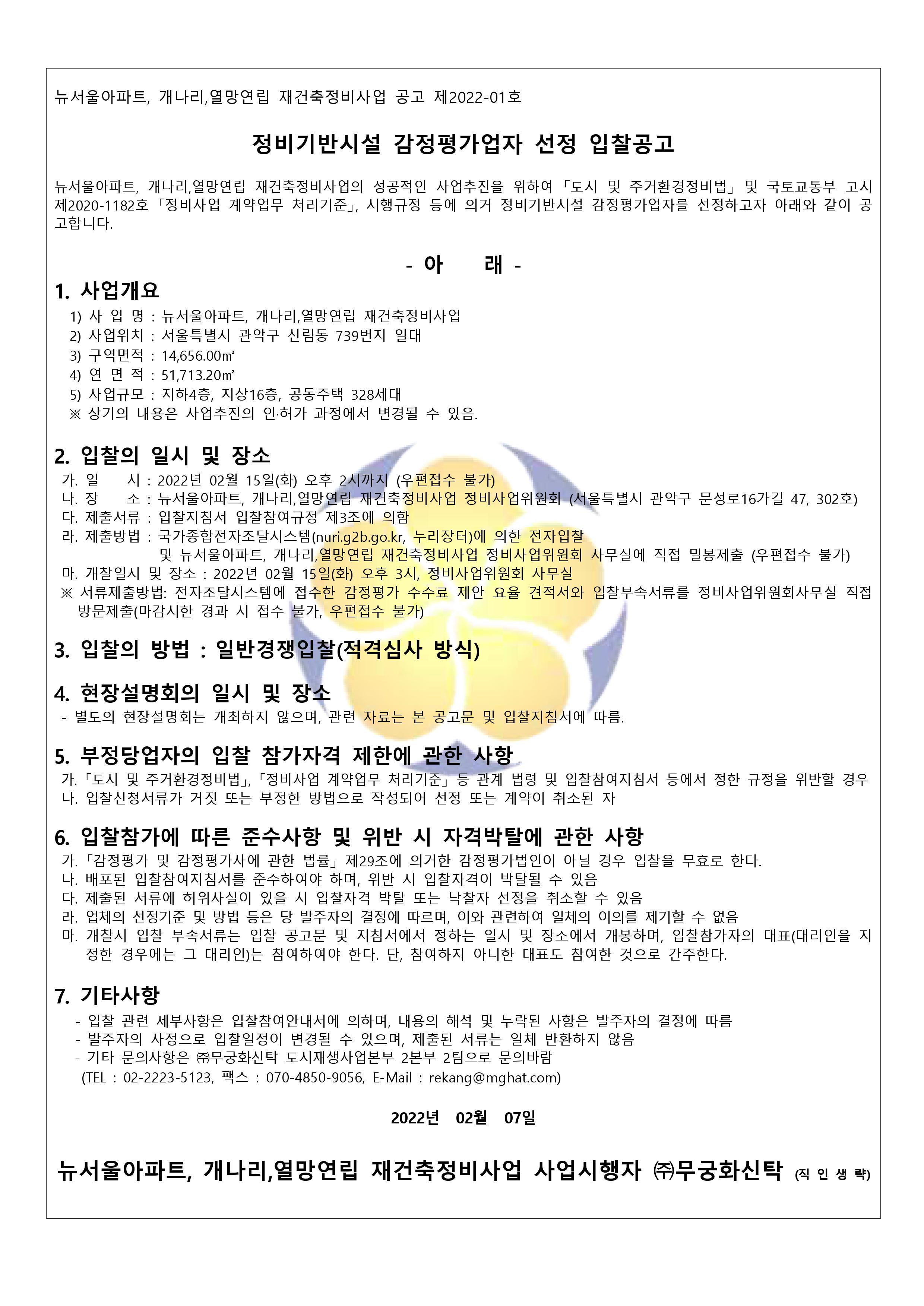 [정비기반시설 감정평가업자 선정 입찰공고]제2022-01호