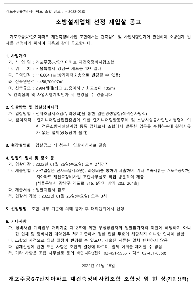 추진위원회/조합명 : 개포주공6,7단지아파트 재건축정비사업조합