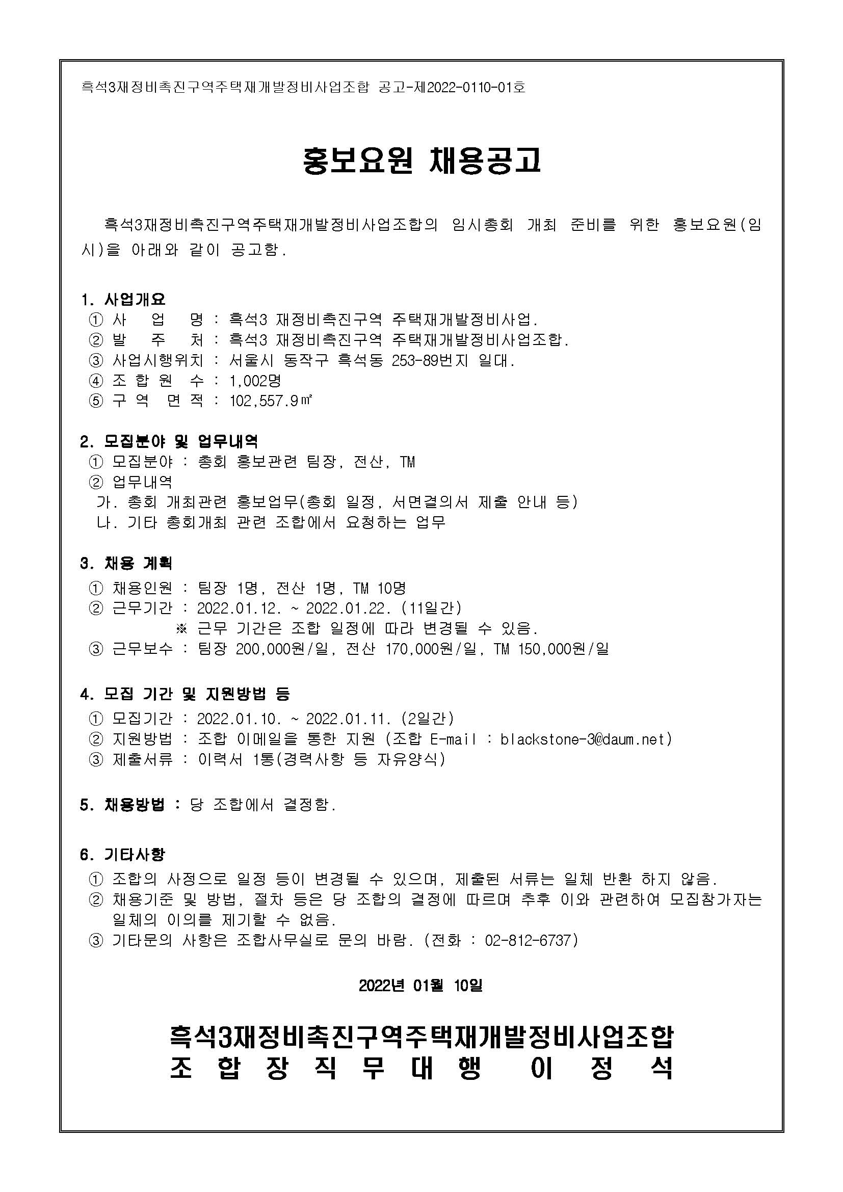 추진위원회/조합명 : 흑석3재정비촉진구역 주택재개발정비사업조합
