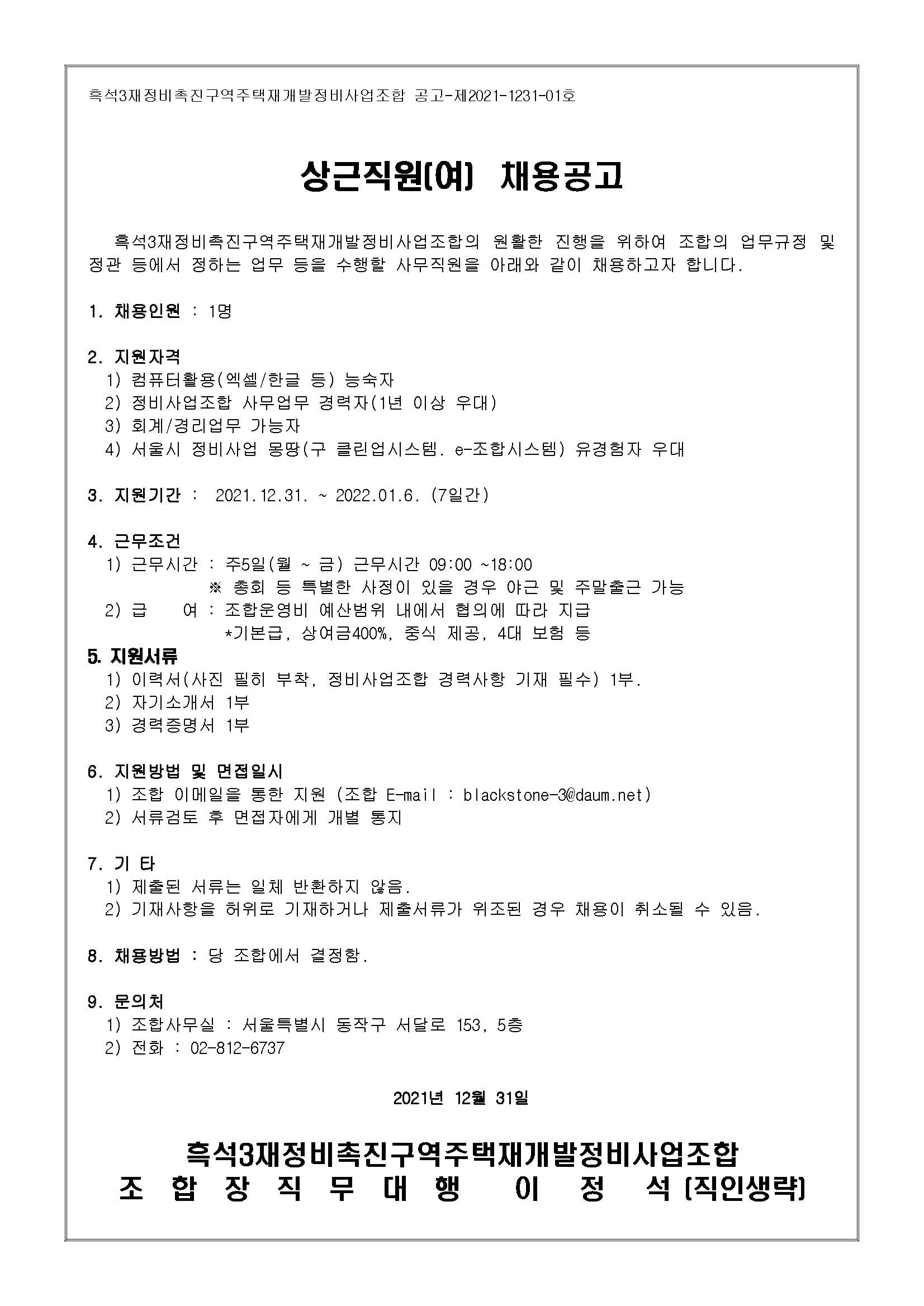 추진위원회/조합명 : 흑석3재정비촉진구역 주택재개발정비사업조합