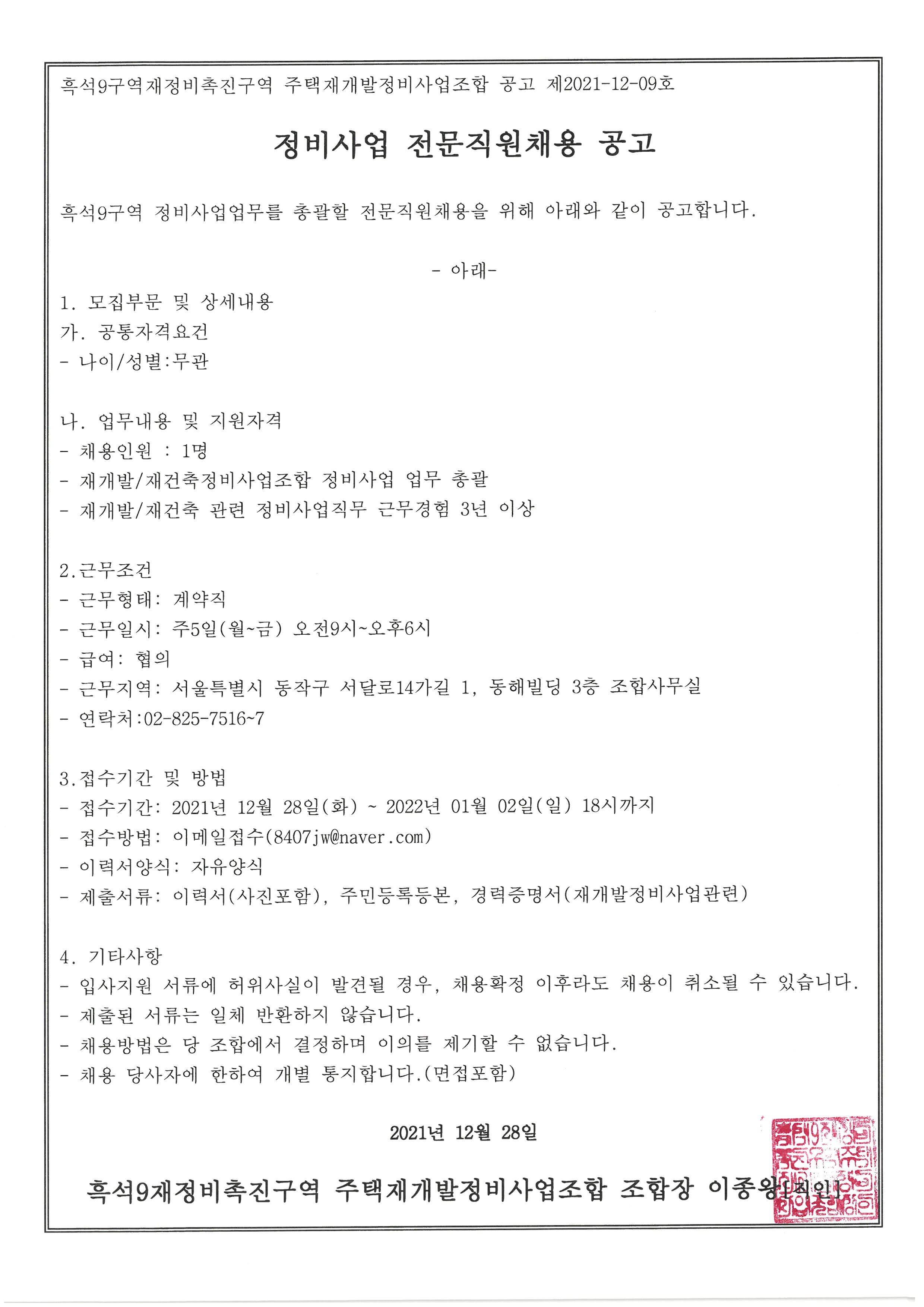 추진위원회/조합명 : 흑석9재정비촉진구역 조합