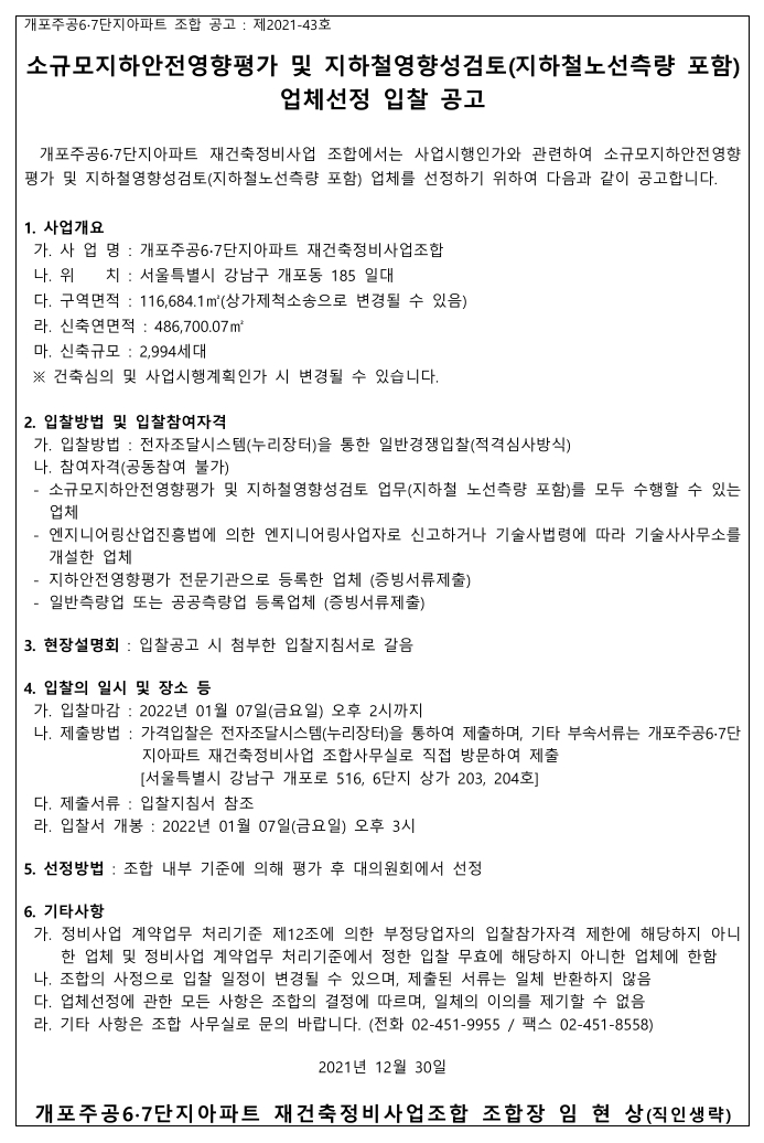 추진위원회/조합명 : 개포주공6,7단지아파트 재건축정비사업조합